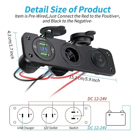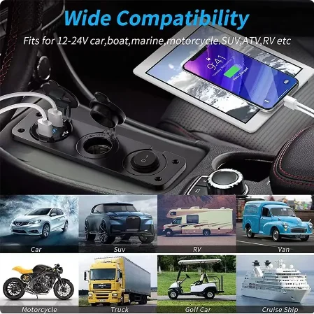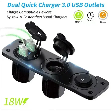 Comprar Cargador USB Dual 3 en 1 para coche, enchufe de encendedor de cigarrillos, adaptador de toma de corriente con interruptor de voltímetro para coche, barco marino, camión ATV
