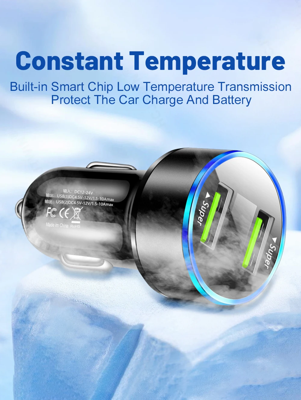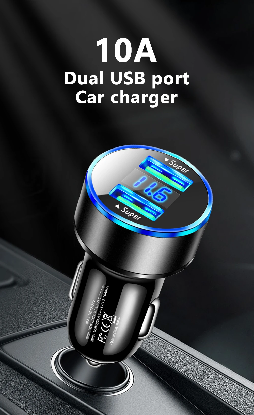 Comprar Cargador USB Dual para coche, adaptador de carga rápida QC 3,0 10A para iPhone 12 13 Pro Xiaomi Huawei Samsung S22 S21