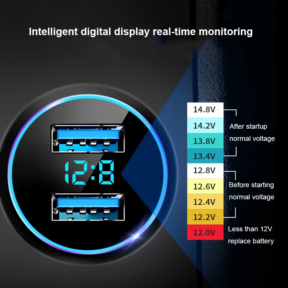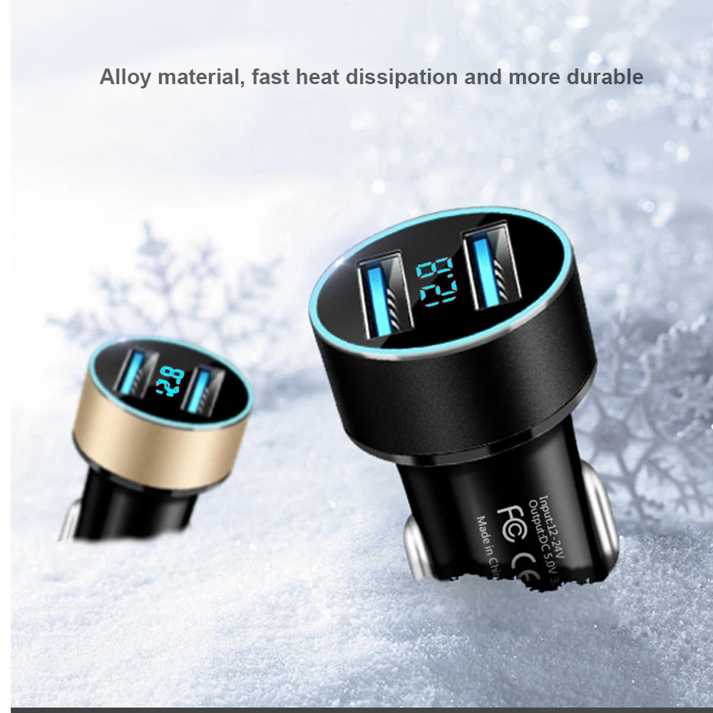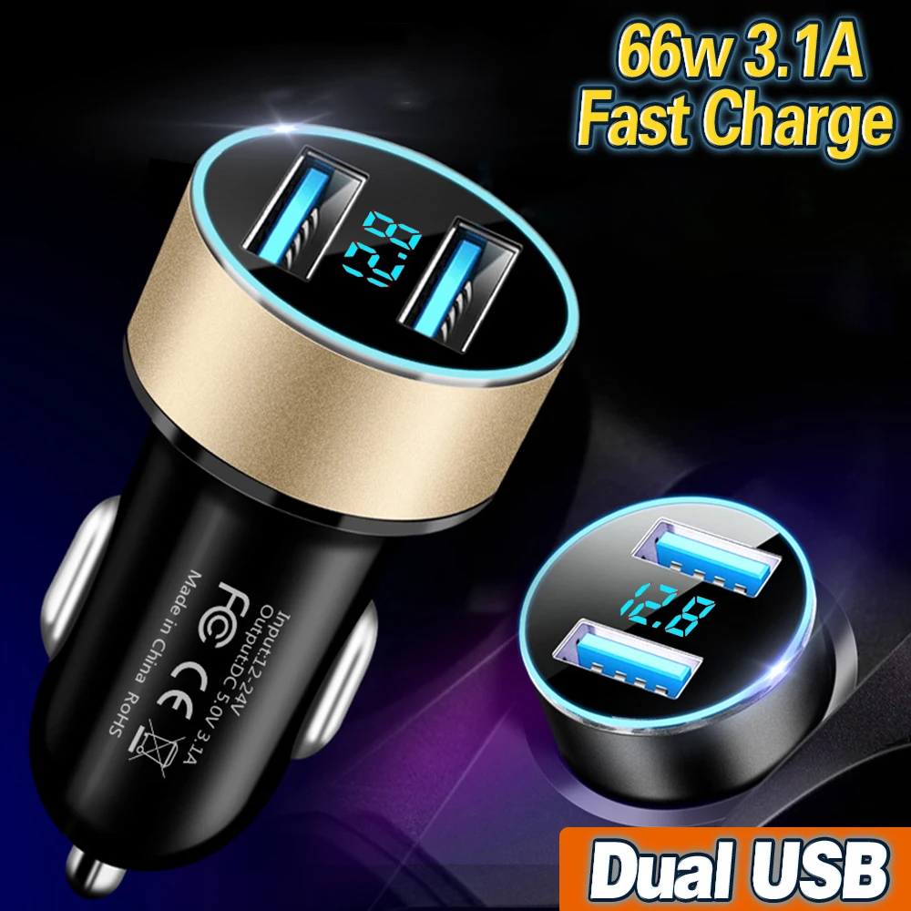 Comprar Cargador USB Dual para coche, adaptador QC3.0, pantalla Digital LED, carga rápida, 66W, 3.1A, para iPhone, Xiaomi, Samsung, Huawei, OPPO