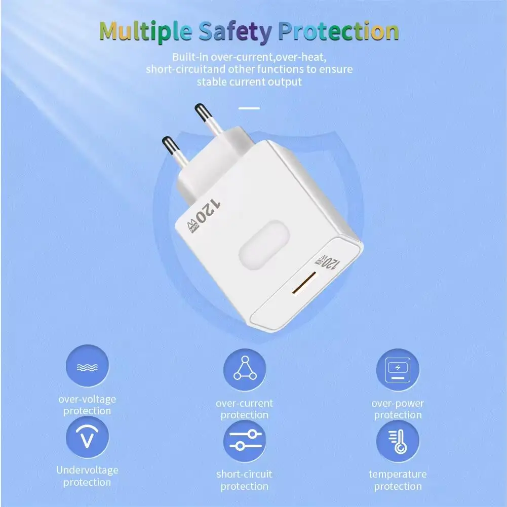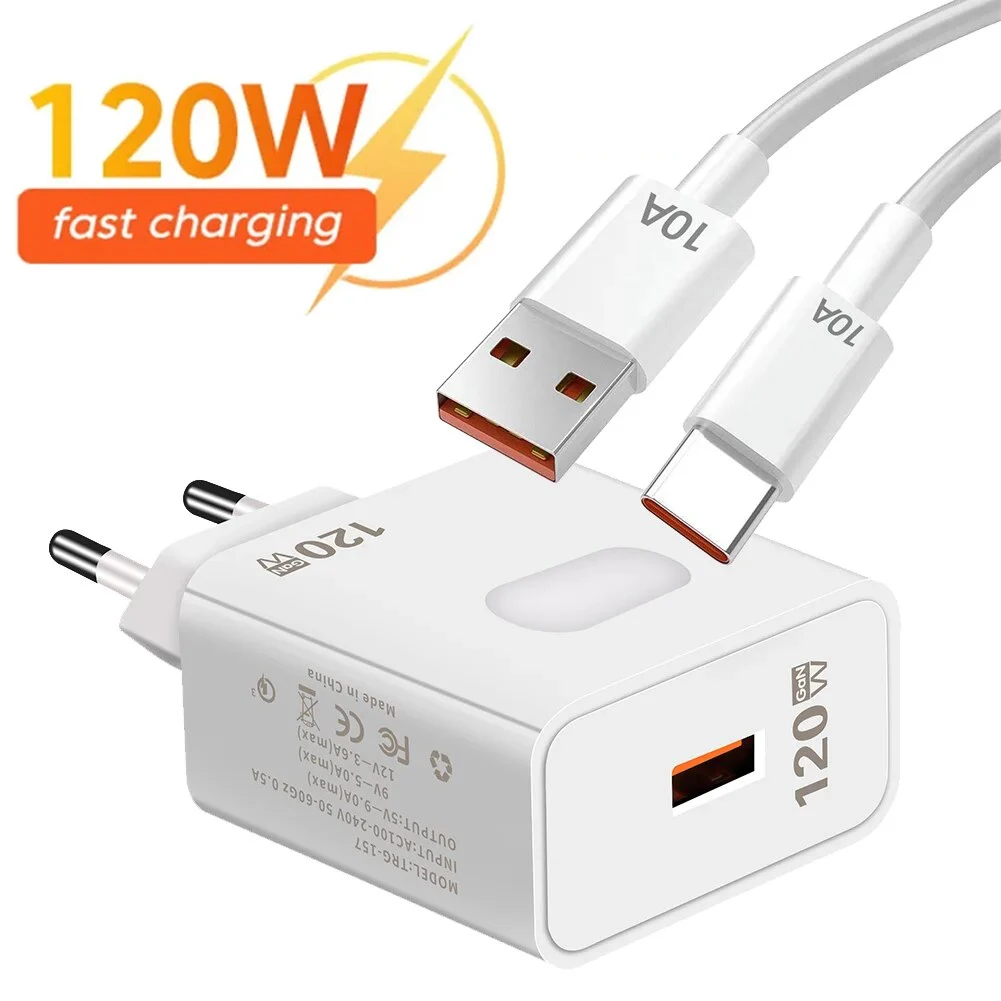 Cargador USB GaN de 120W, adaptador de cargador de teléfono móvil QC 3,0 para iPhone, Samsung, Xiaomi, Huawei, 10A, Cable tipo C, cargador de pared rápido USB