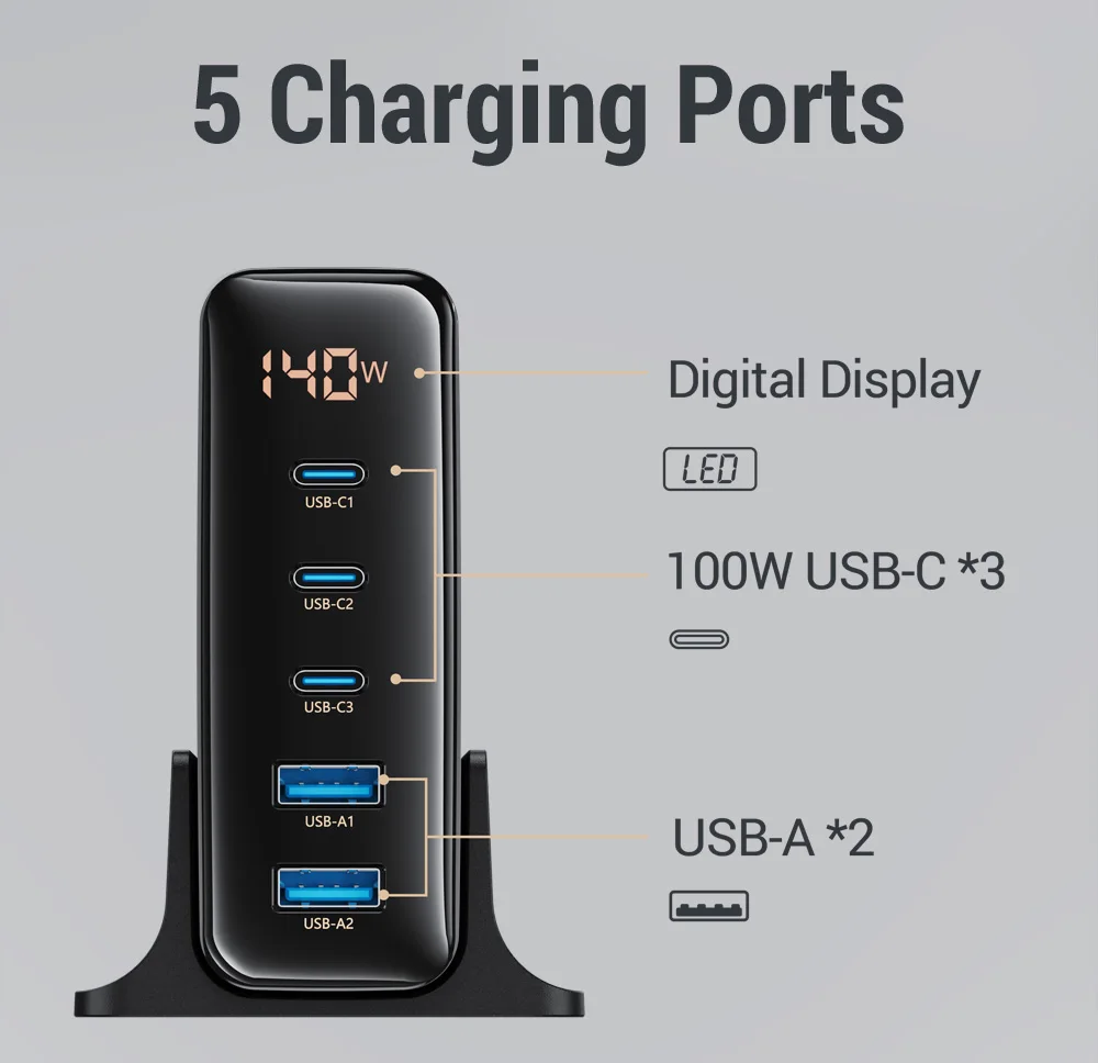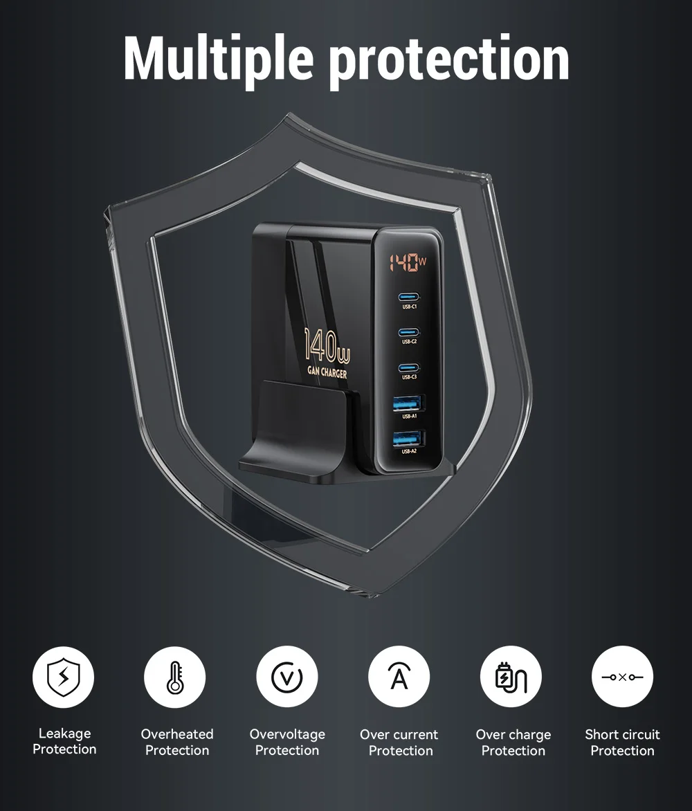 Comprar Cargador USB GaN de 140W, estación de carga USB multipuerto, carga rápida PD PPS, carga rápida para IPhone 14, 13, Xiaomi, Samsung, MacBook