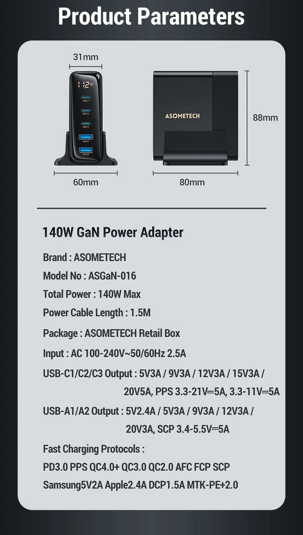 El cargador GaN de 140W admite protocolos de carga rápida: