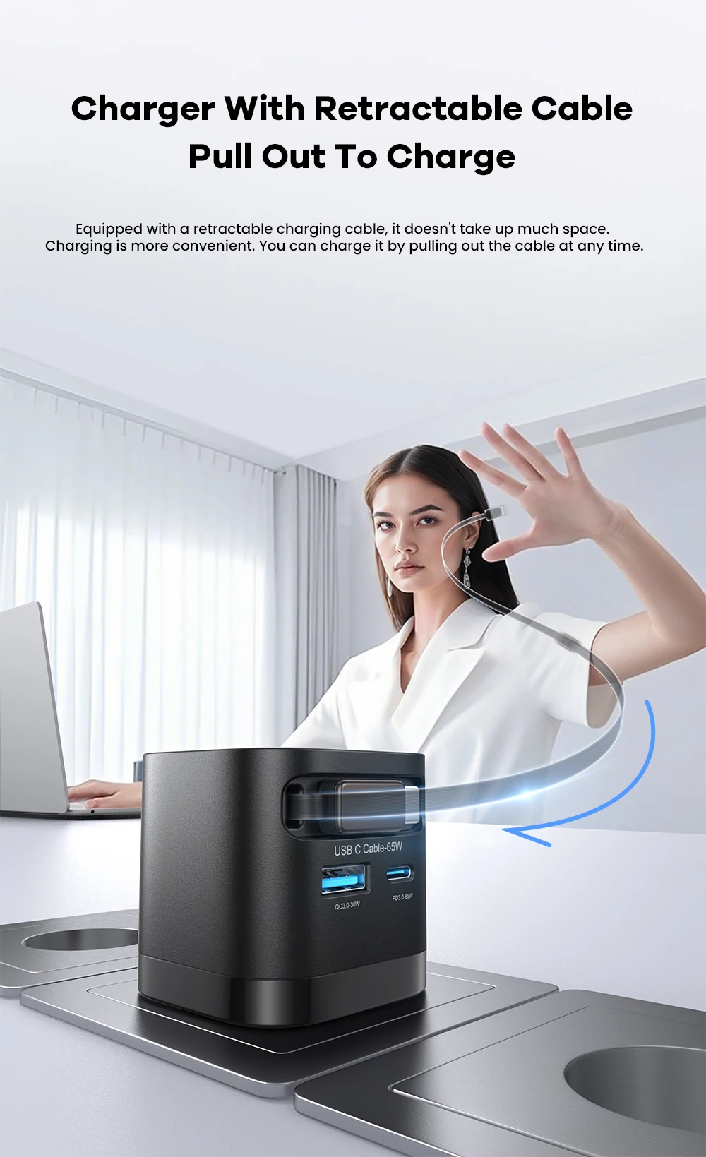 Nombre: Cargador GaN de 65 W con cable retráctil