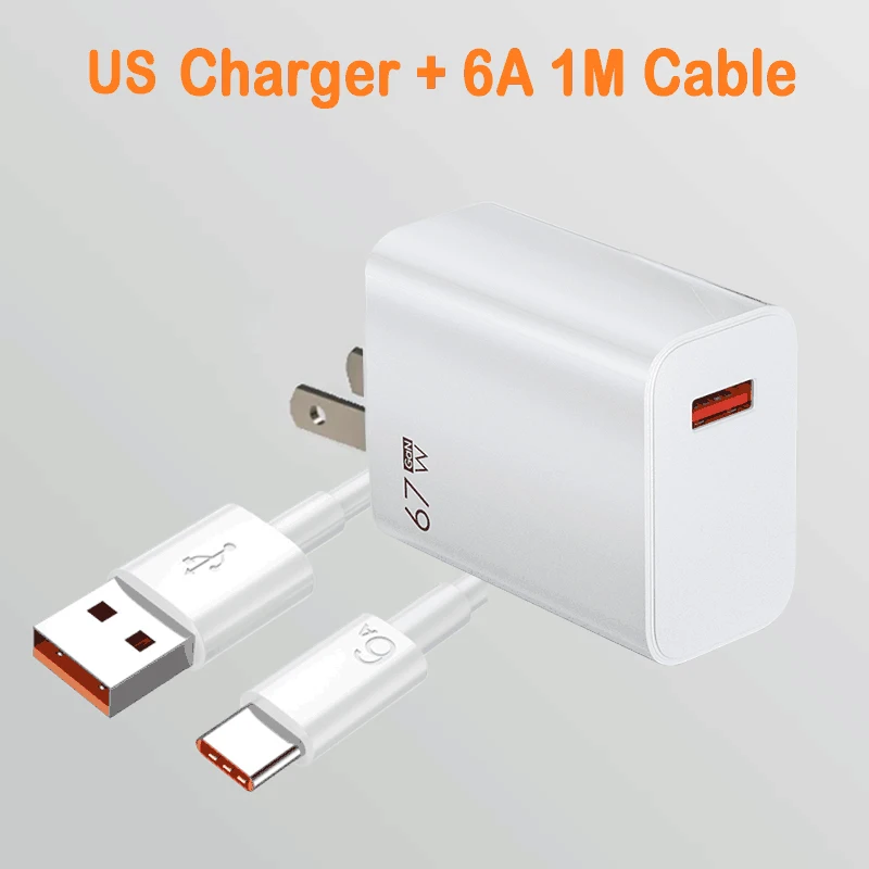 Cargador USB GaN de 67W, adaptador de carga de teléfono de carga rápida para iPhone, Samsung, Xiaomi, Huawei, carga rápida 3,0, cargador de pared con enchufe UE/EE. UU.