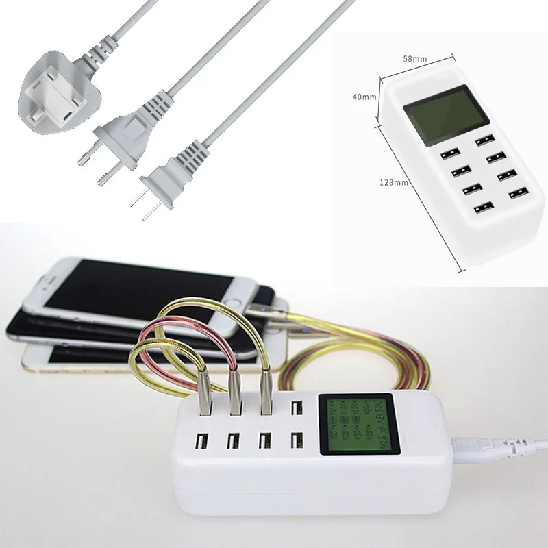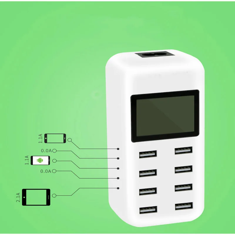 Nombre del productoCarga rápida de teléfono inteligente 8USB (con pantalla LCD que identifica automáticamente el voltaje y la corriente)