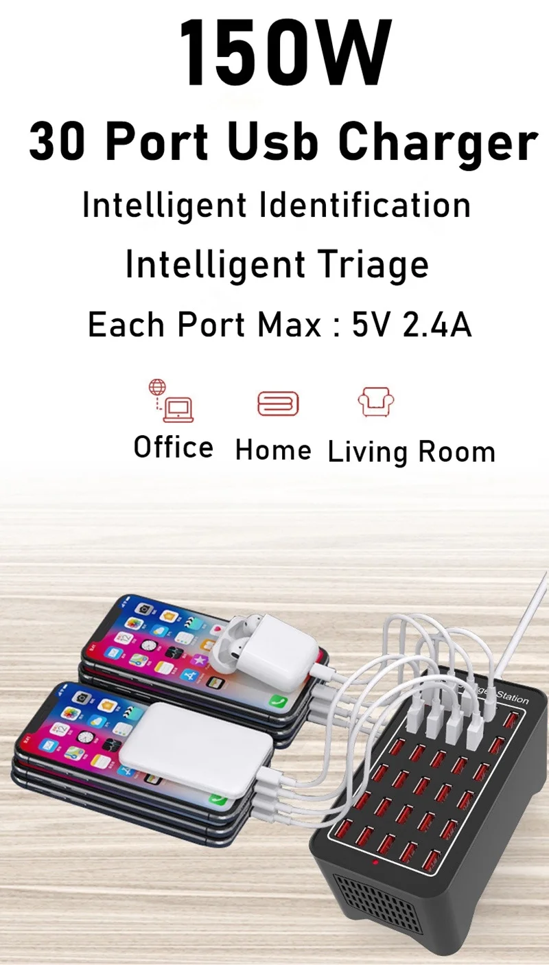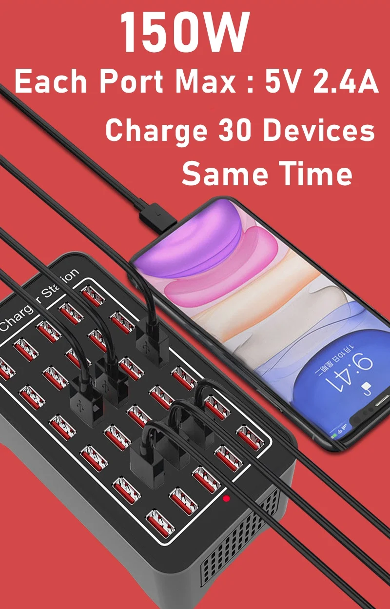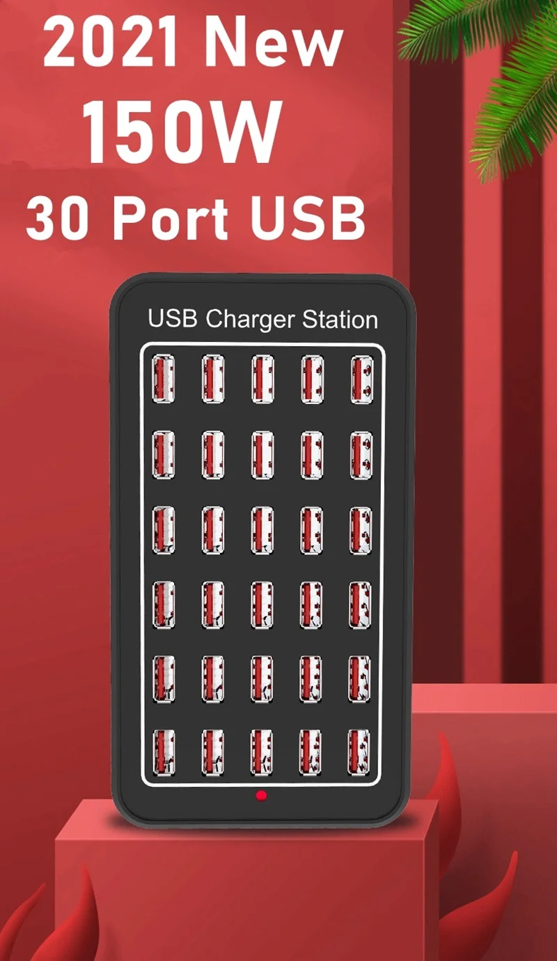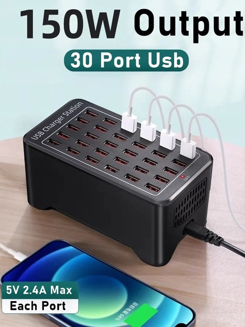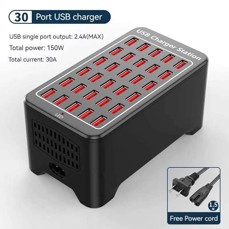 Comprar Cargador USB múltiple de 150W, estación de carga rápida con 30 puertos USB, cargador portátil Universal para Iphone 13, Samsung, Xiaomi, Ipad y Tablet