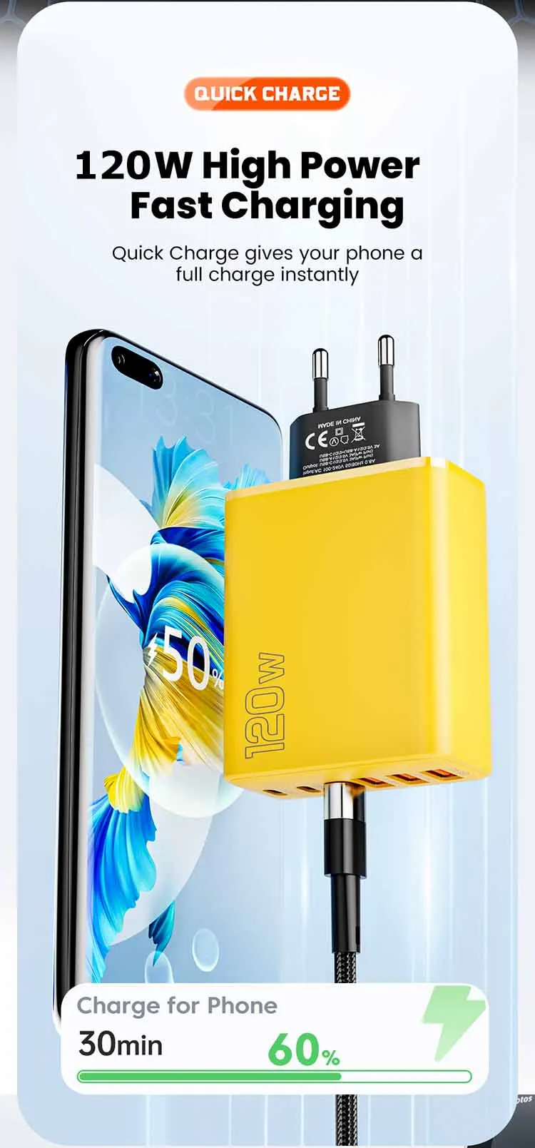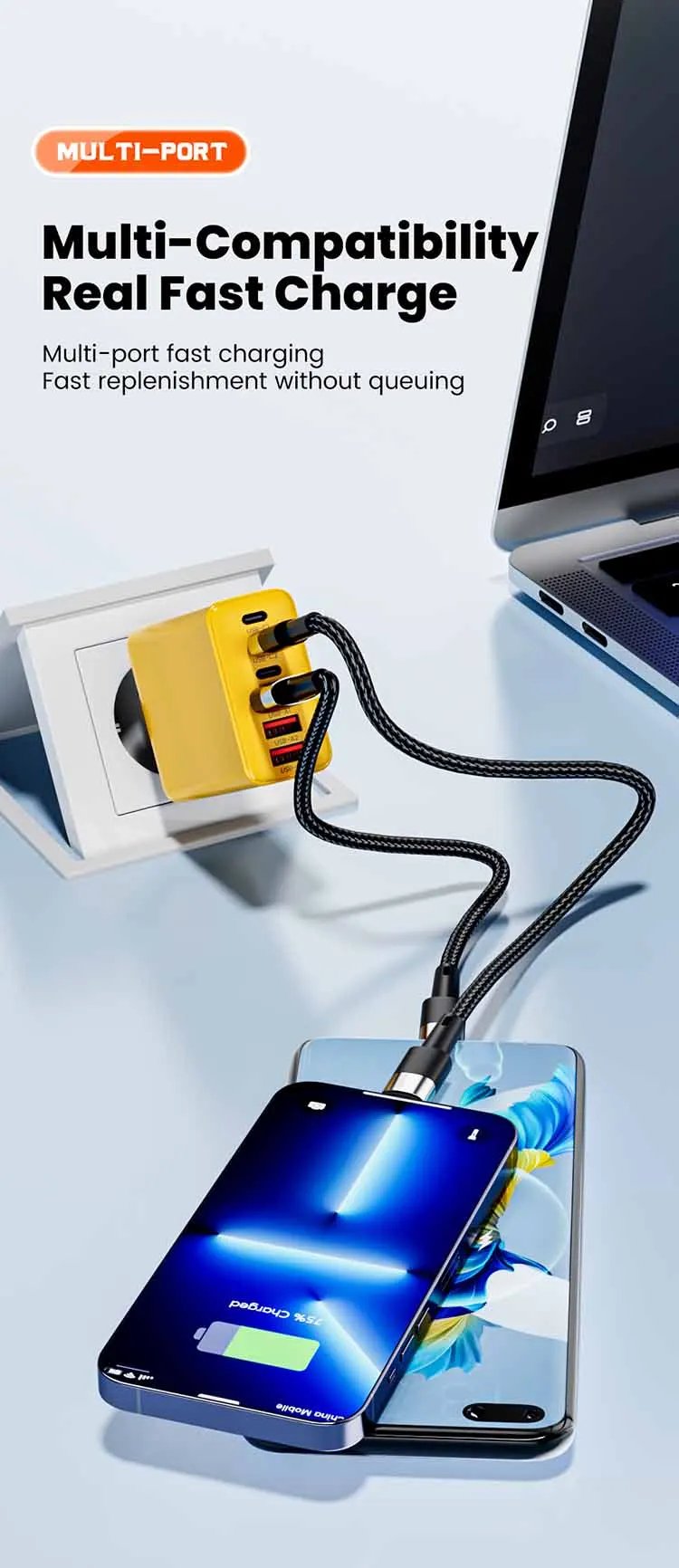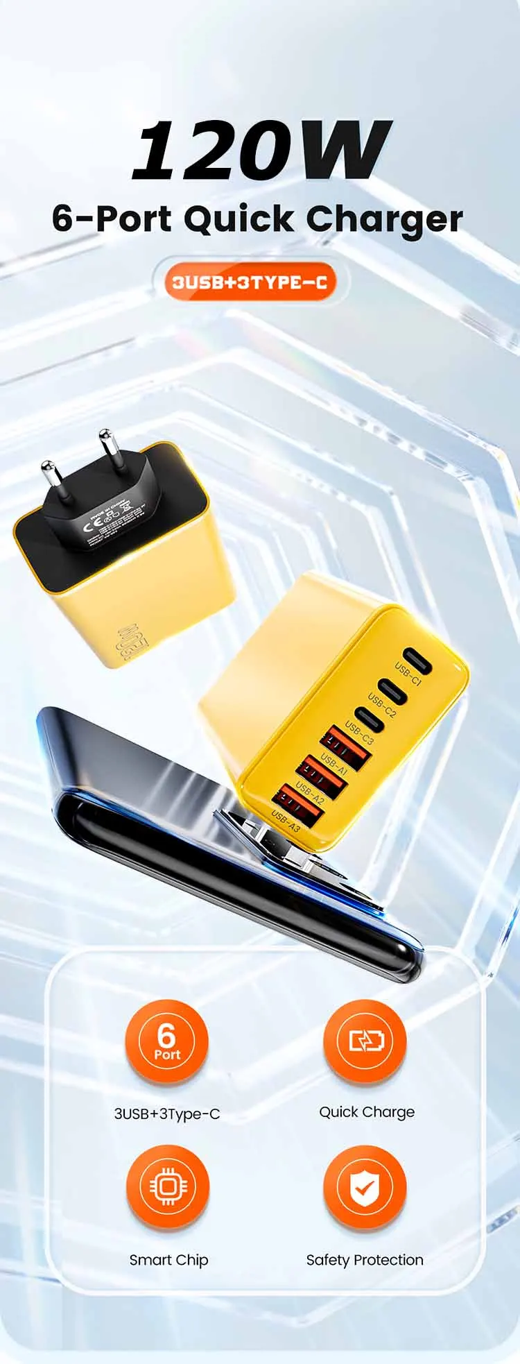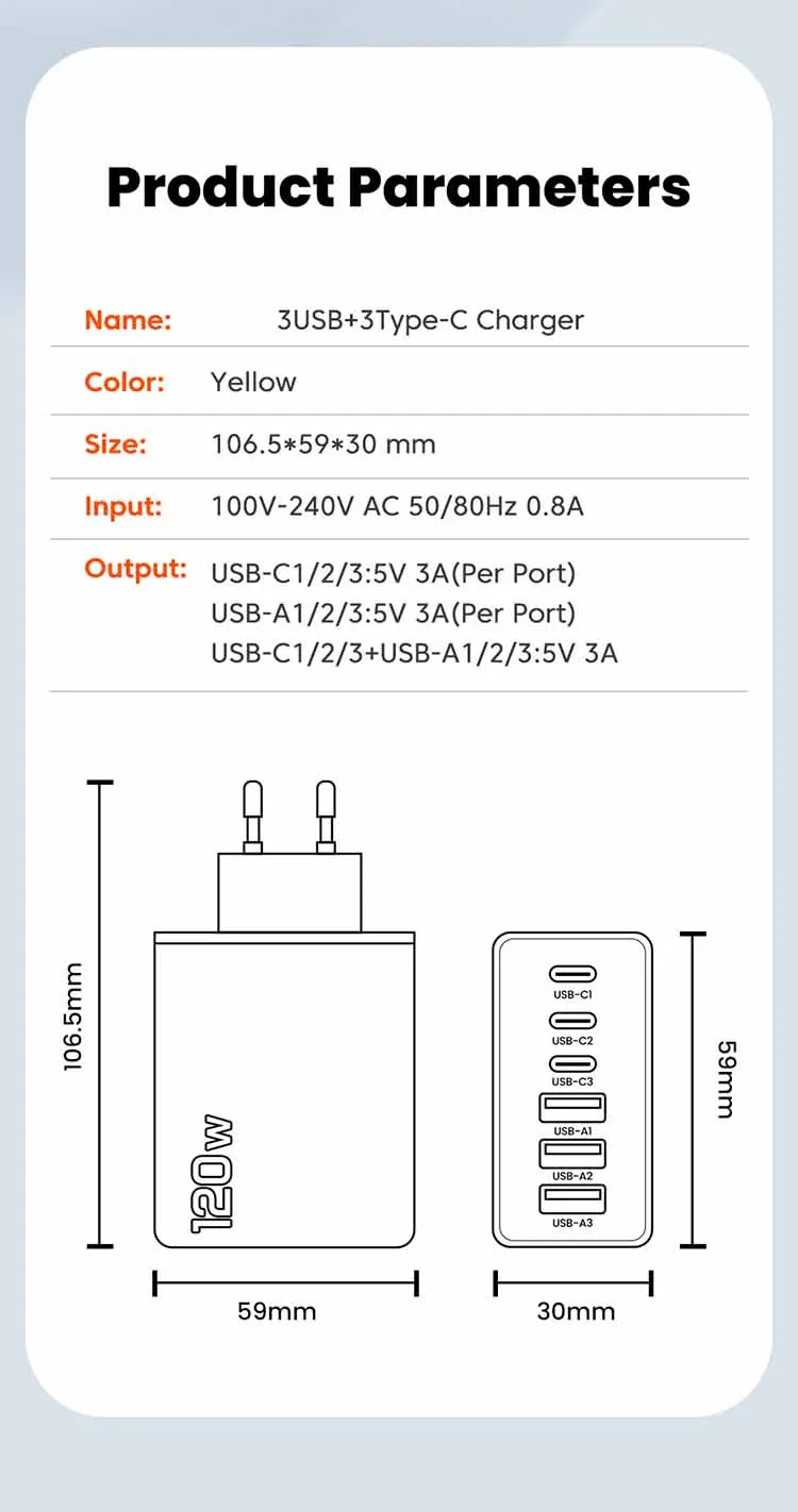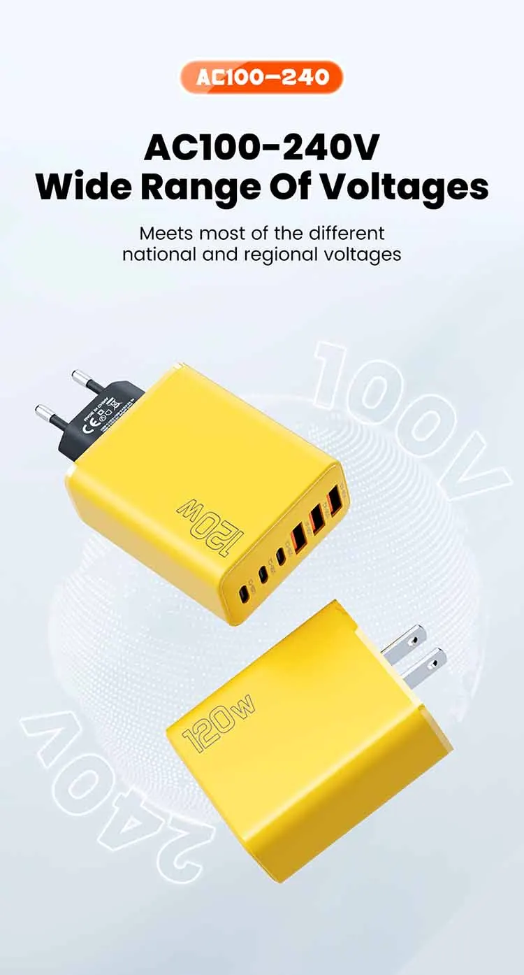 Cargador USB PD de 120W, adaptador de carga rápida para Samsung Xiaomi, multipuerto USB tipo C, adaptador de cargador súper rápido para iPhone 15 Pro