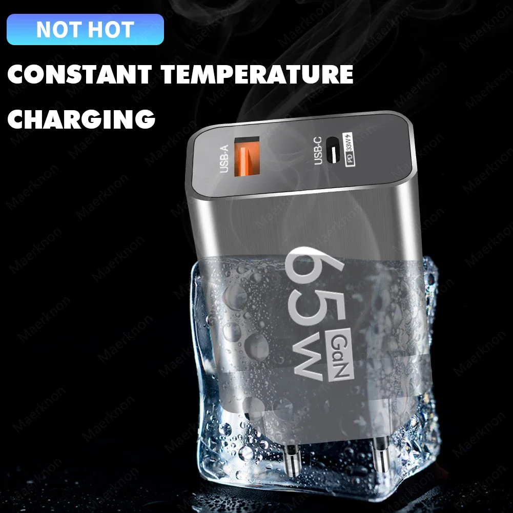 65W 2 puertos USB PD cargador GaN carga rápida tipo C adaptador de teléfono móvil para iPhone Samsung Xiaomi Quick Charge3.0 cargador de pared