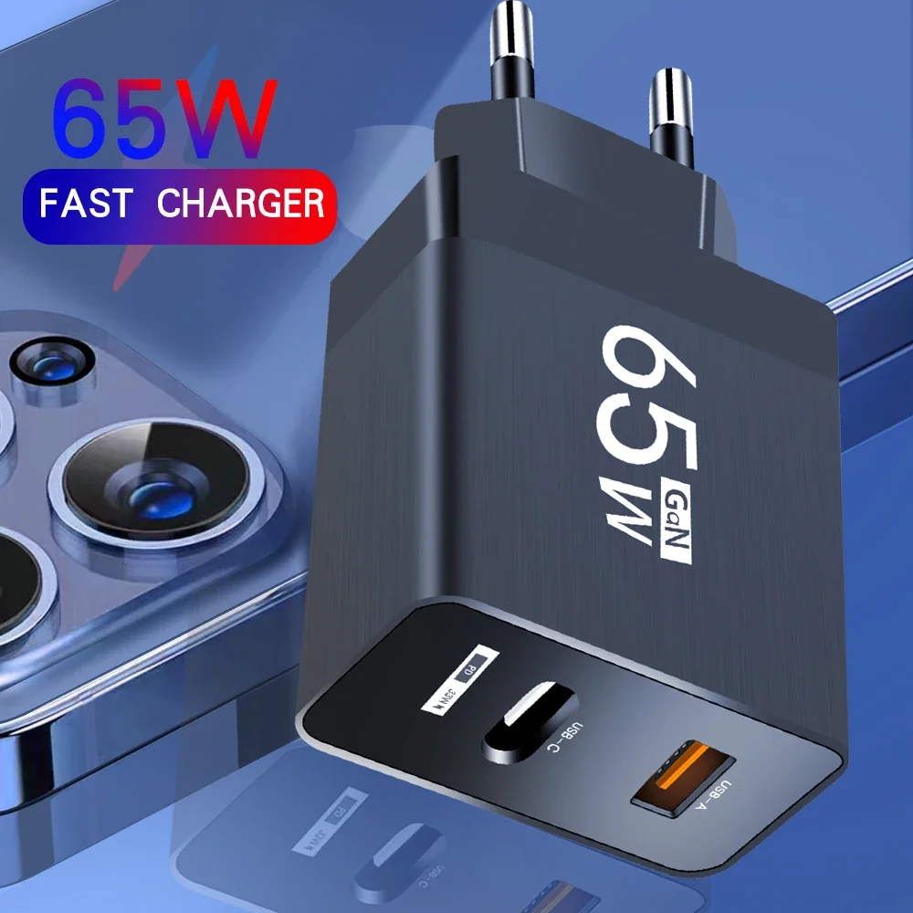 Comprar Cargador USB PD de 2 puertos, adaptador de teléfono móvil tipo C de carga rápida GaN para iPhone Samgsung Xiaomi, cargador de pared 3,0, 65W