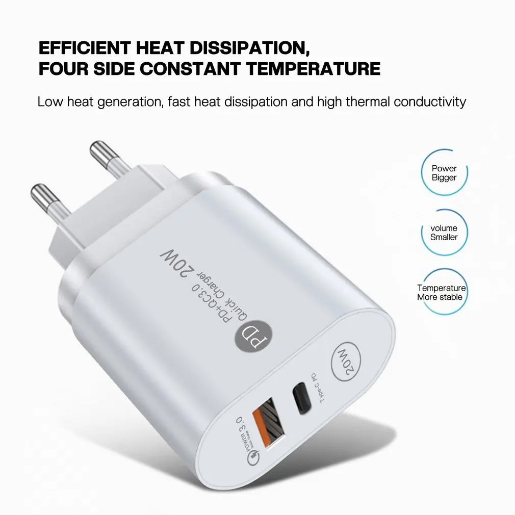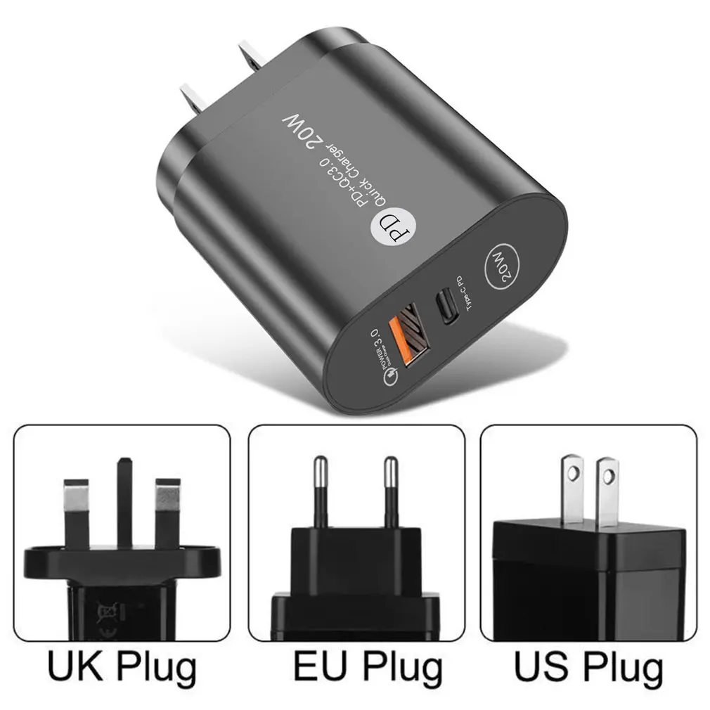 1 juego de cargador rápido imprescindible: Con USB-C PD 3,0 integrada y QC3.0 USB-A puertos de salida duales de 20W, puede usar estos cargadores rápidos para cargar 2 dispositivos al mismo tiempo sin hacer cola. Perfecto para la mayoría de teléfonos móviles del mercado.