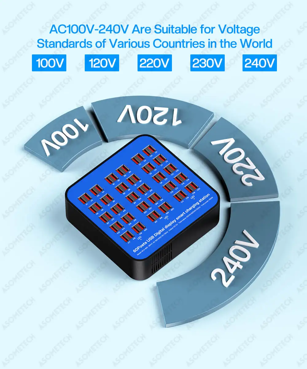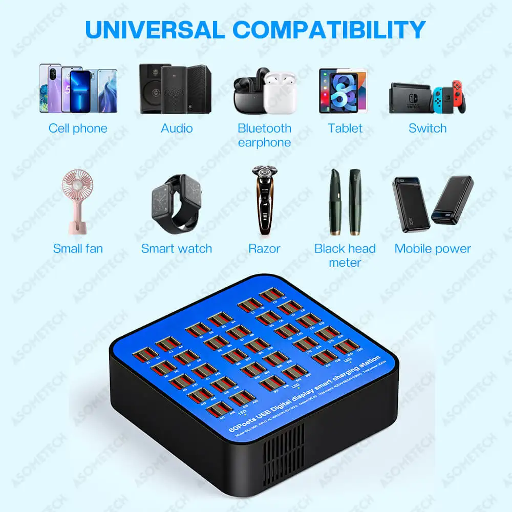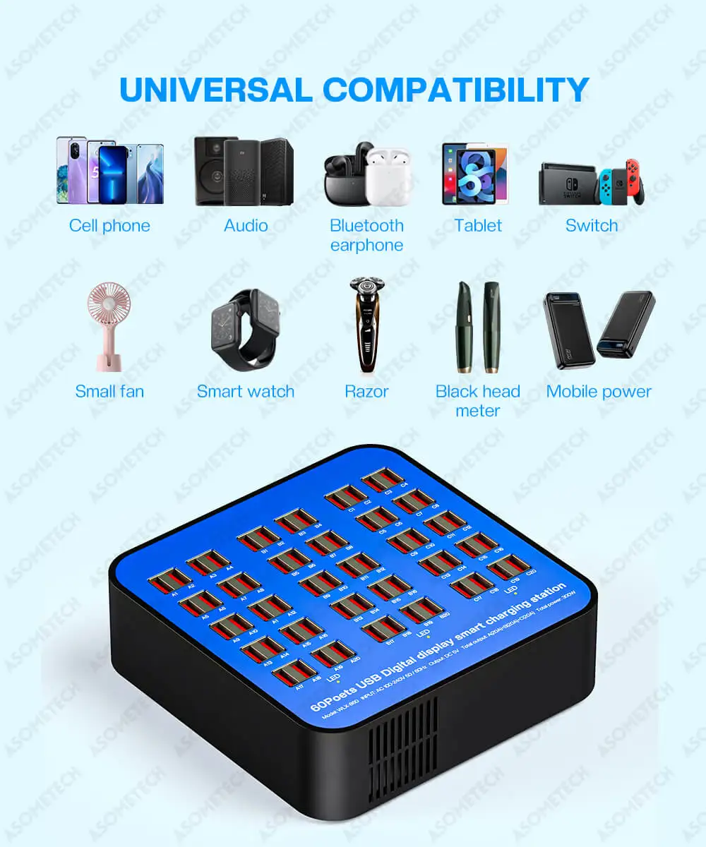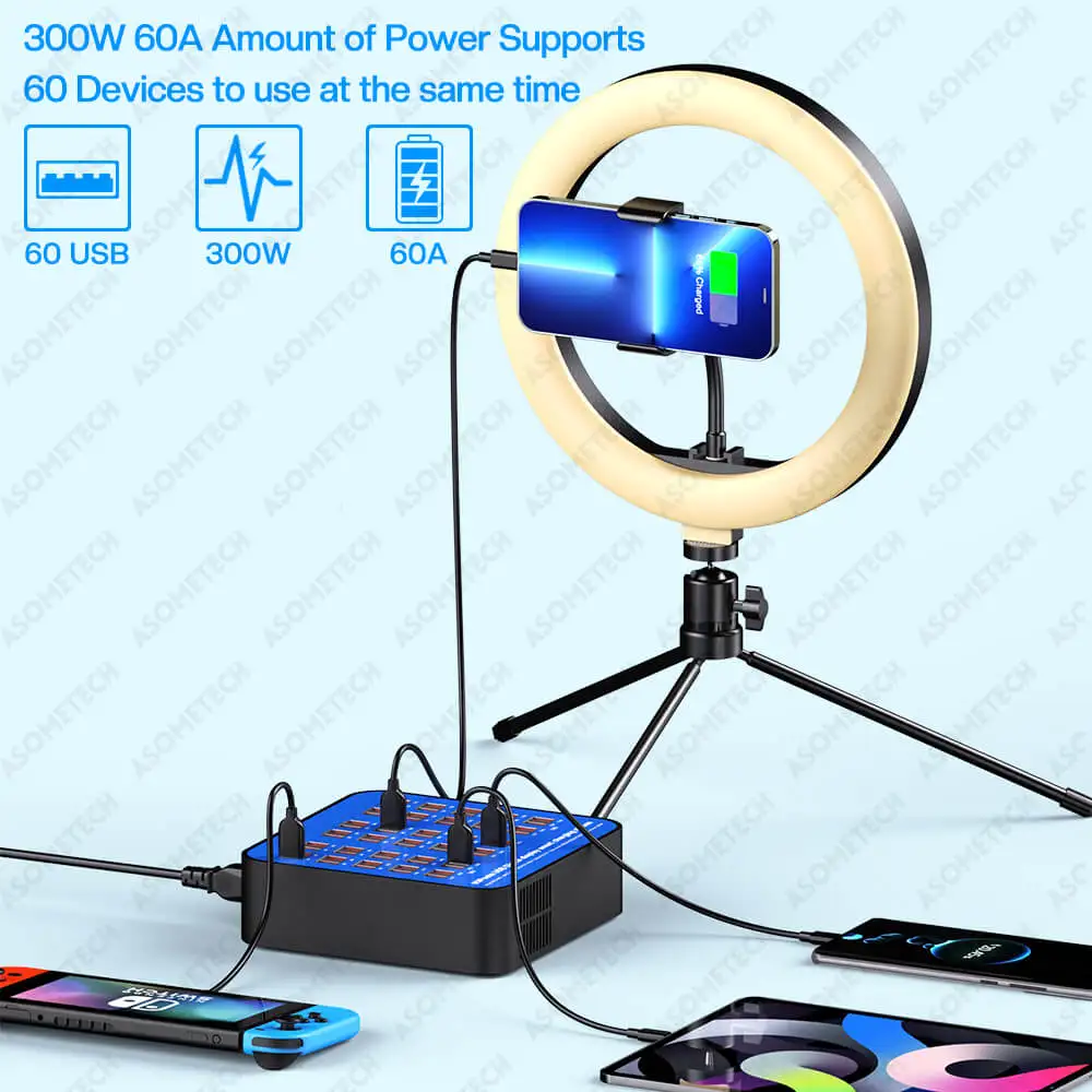 Enchufe de carga USB de 300W y 60 puertos