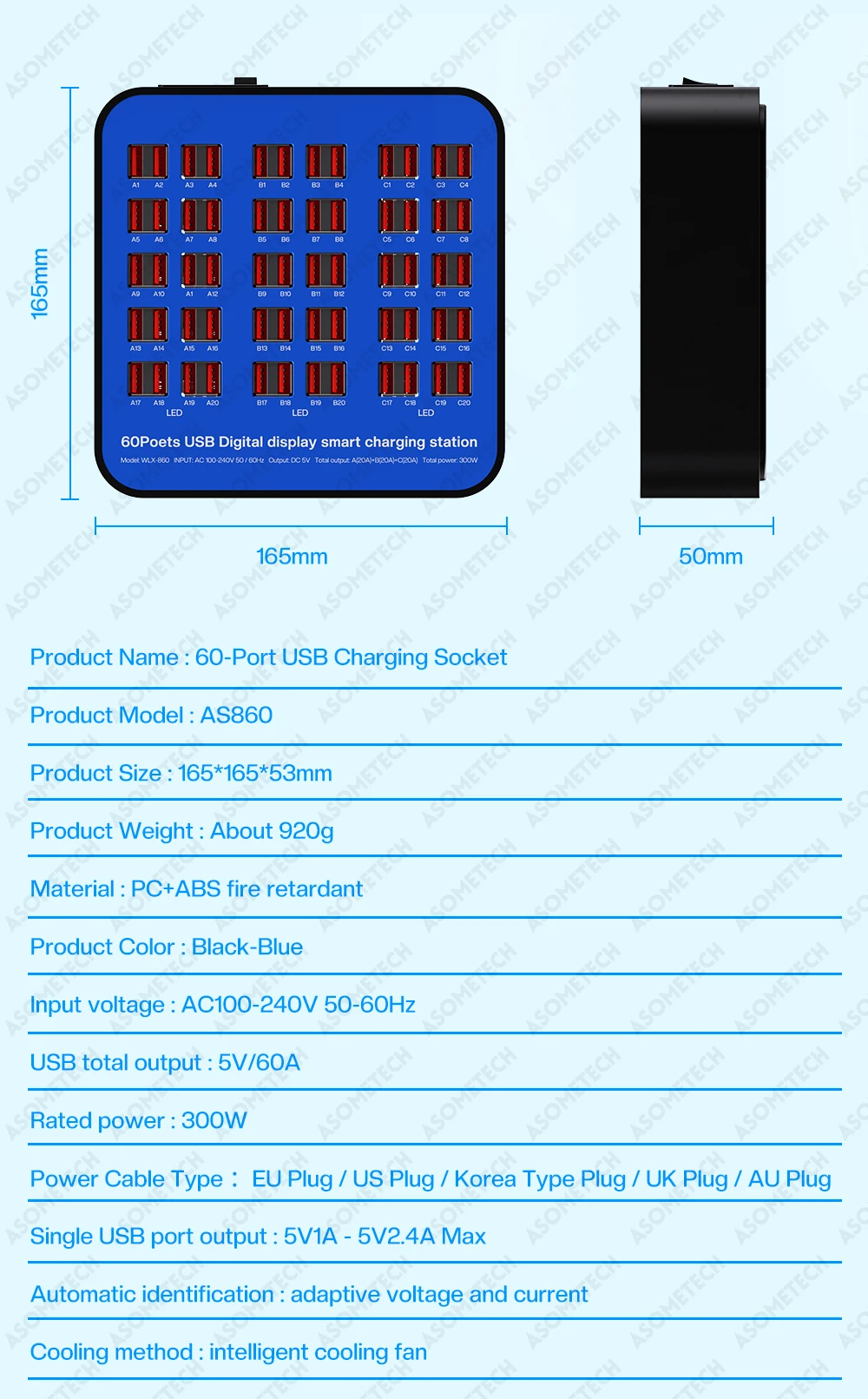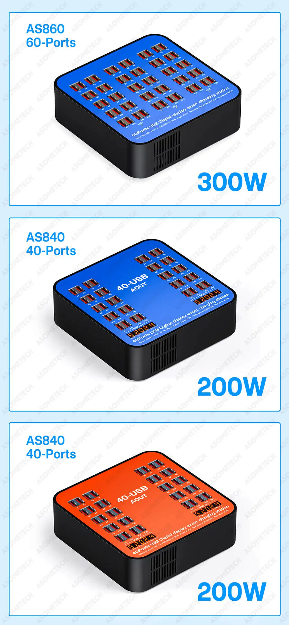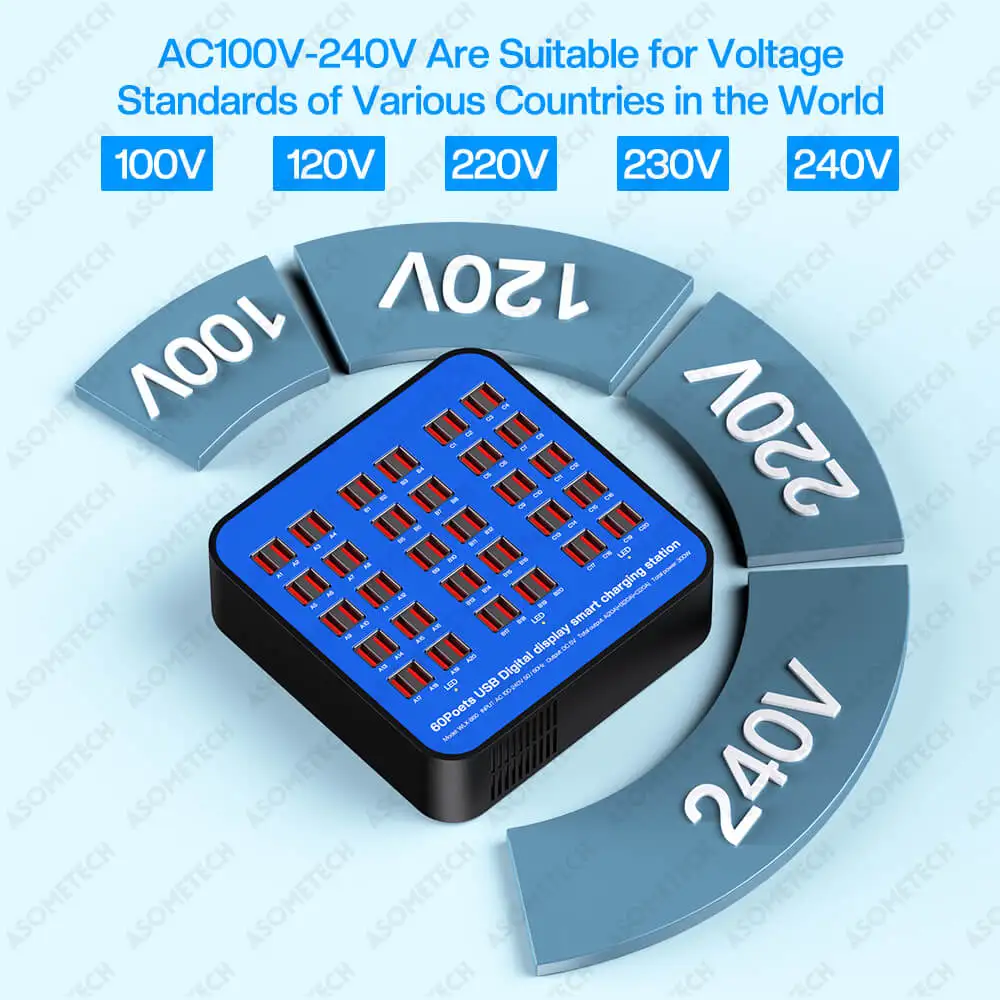 Enchufe de carga USB de 300W y 60 puertos