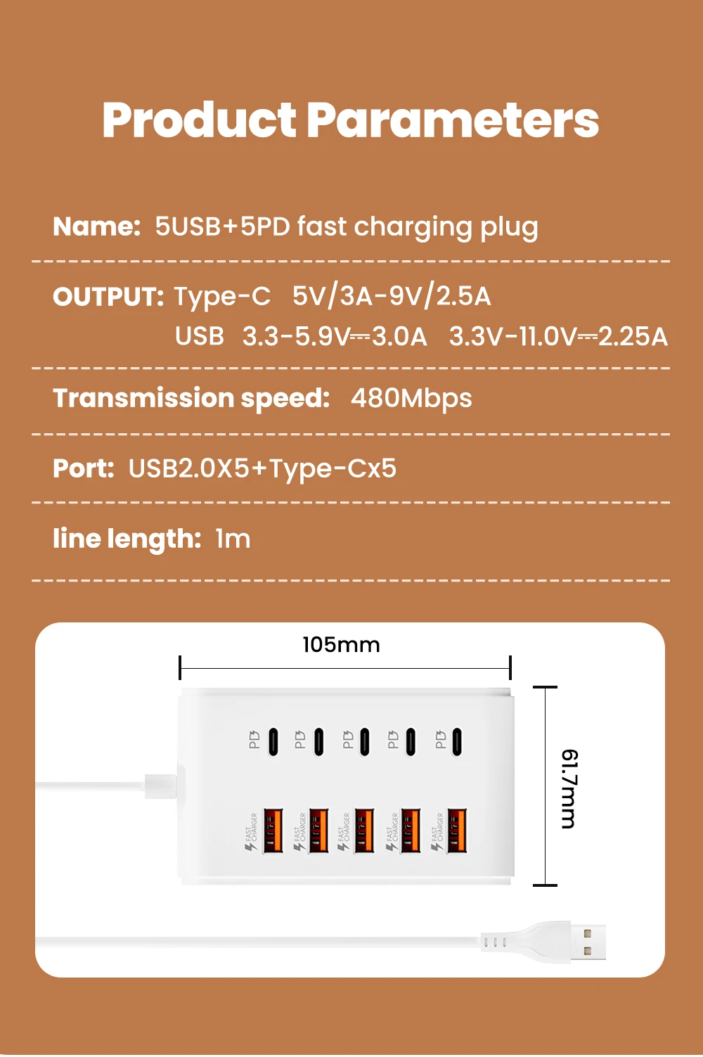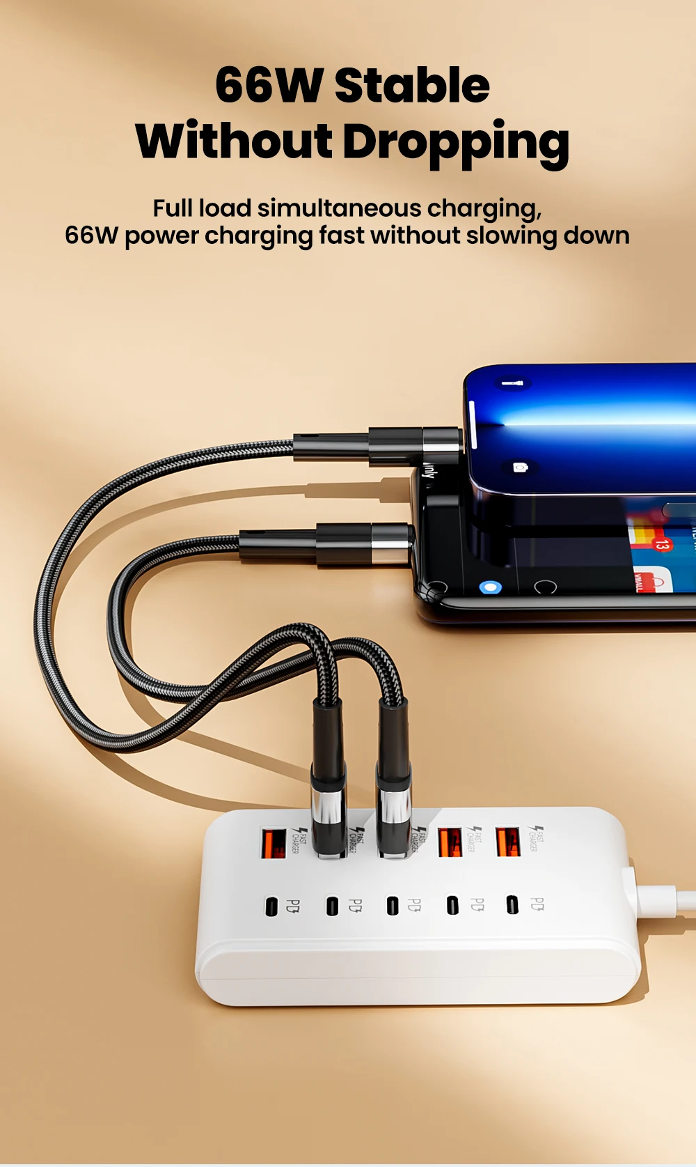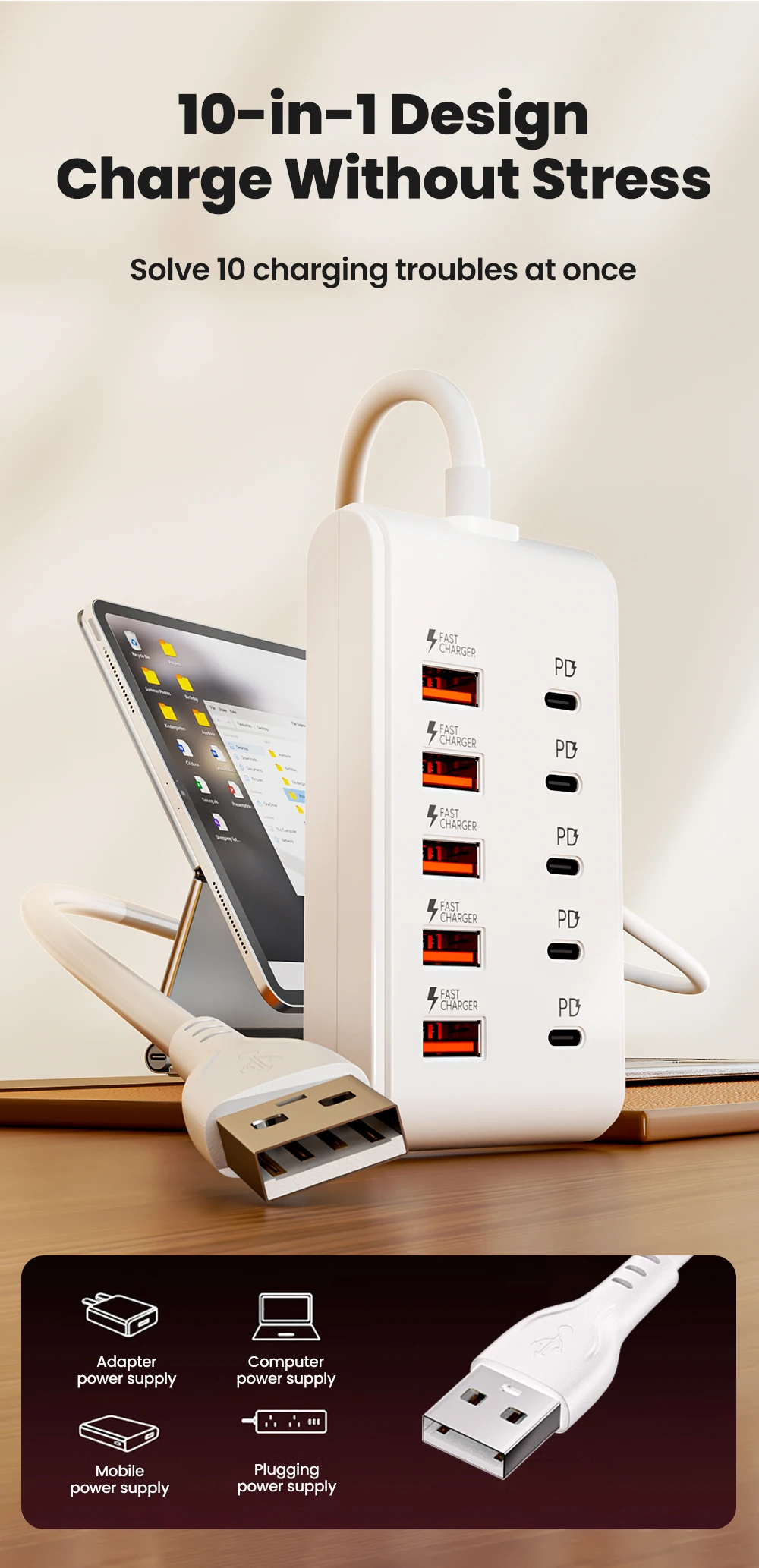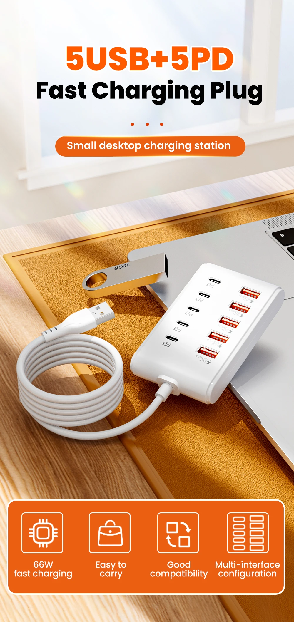 Comprar Cargador USB rápido 10 en 1, tira de alimentación, estación de carga de escritorio, carga rápida, cable de 1m, adaptador de concentrador USB para el hogar y la Oficina