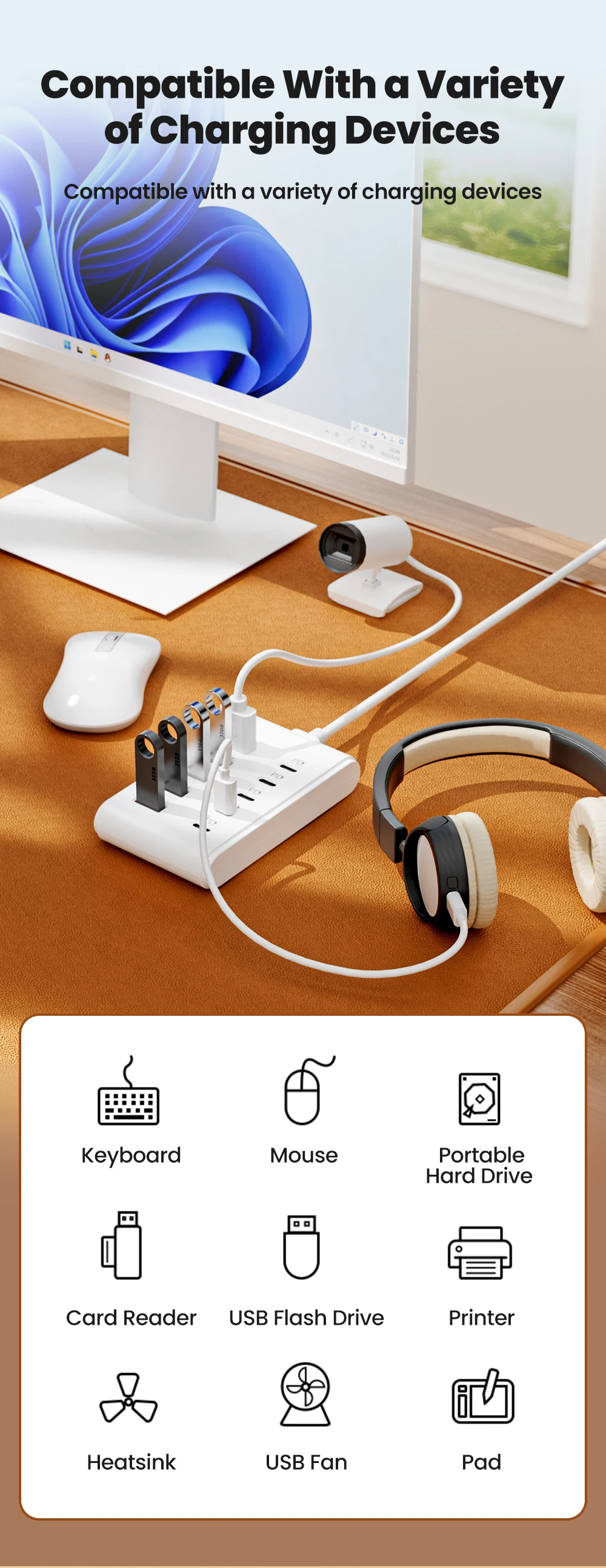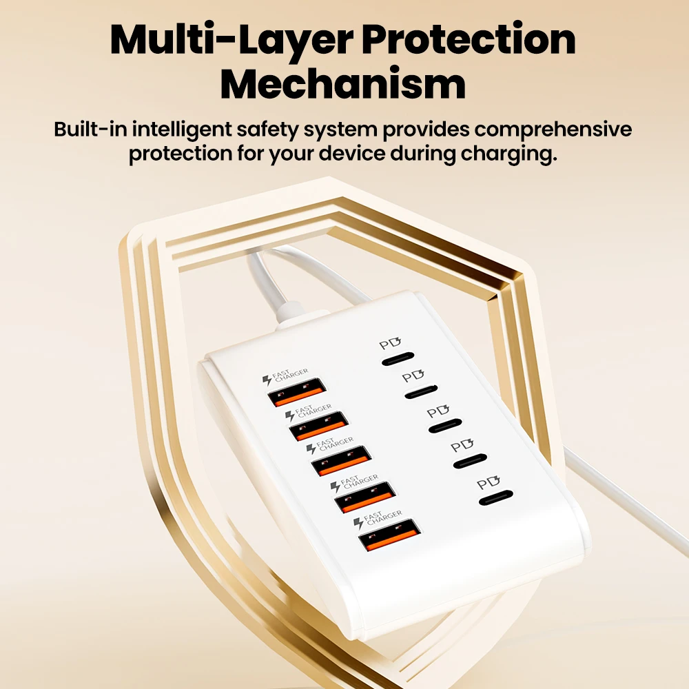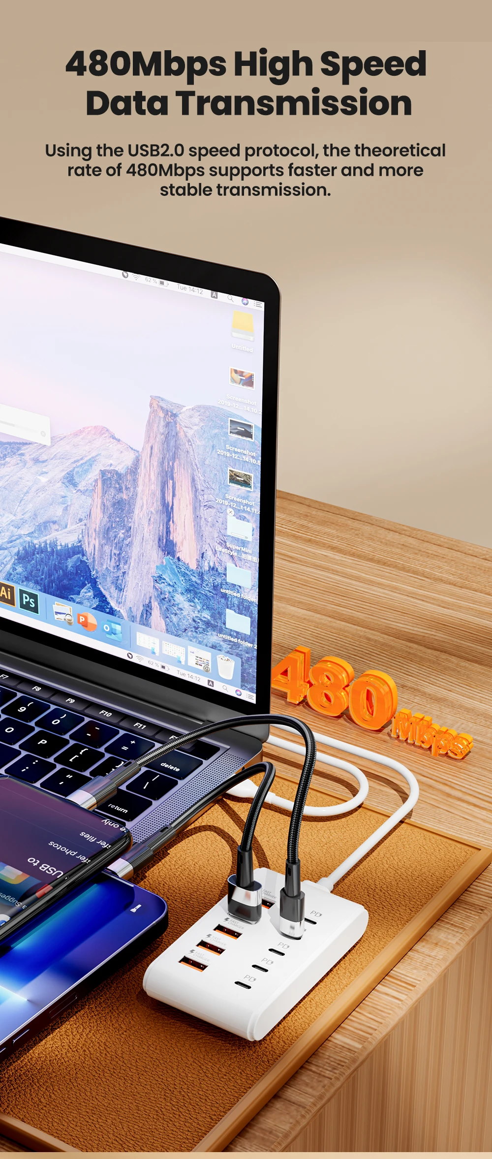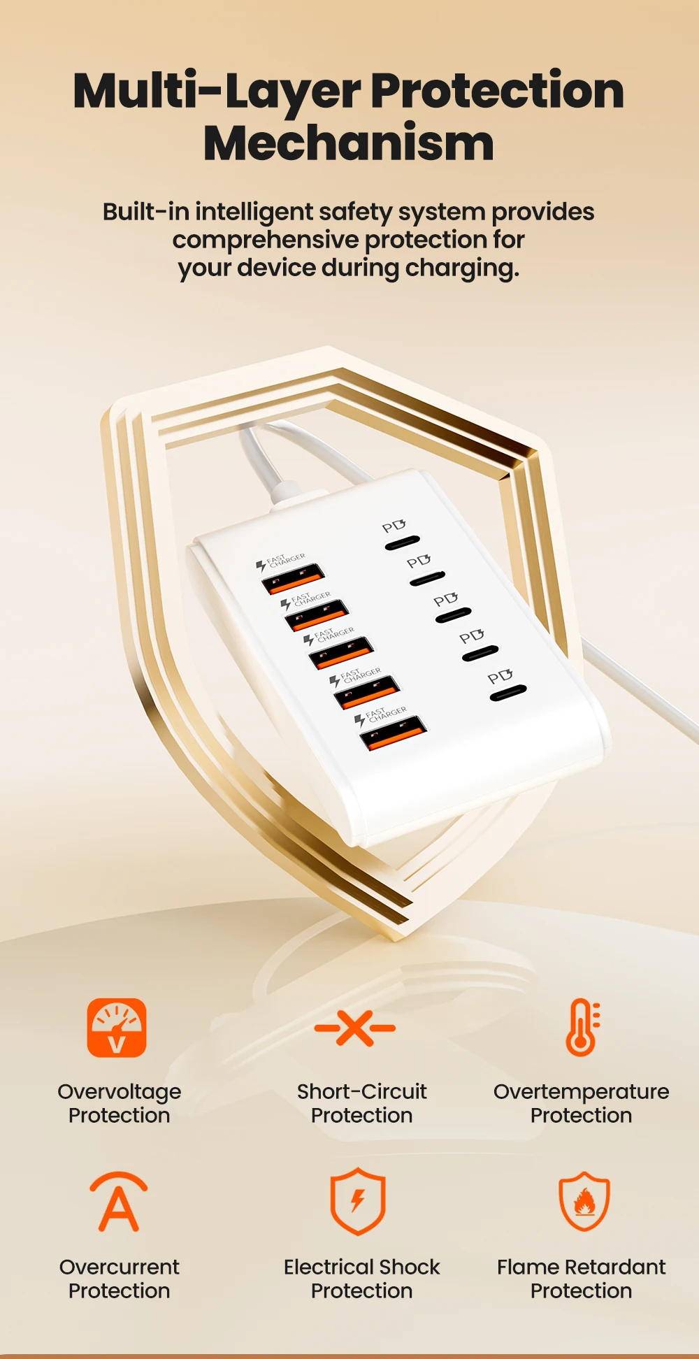 Comprar Cargador USB rápido 10 en 1, tira de alimentación, estación de carga de escritorio, carga rápida, cable de 1m, adaptador de concentrador USB para el hogar y la Oficina