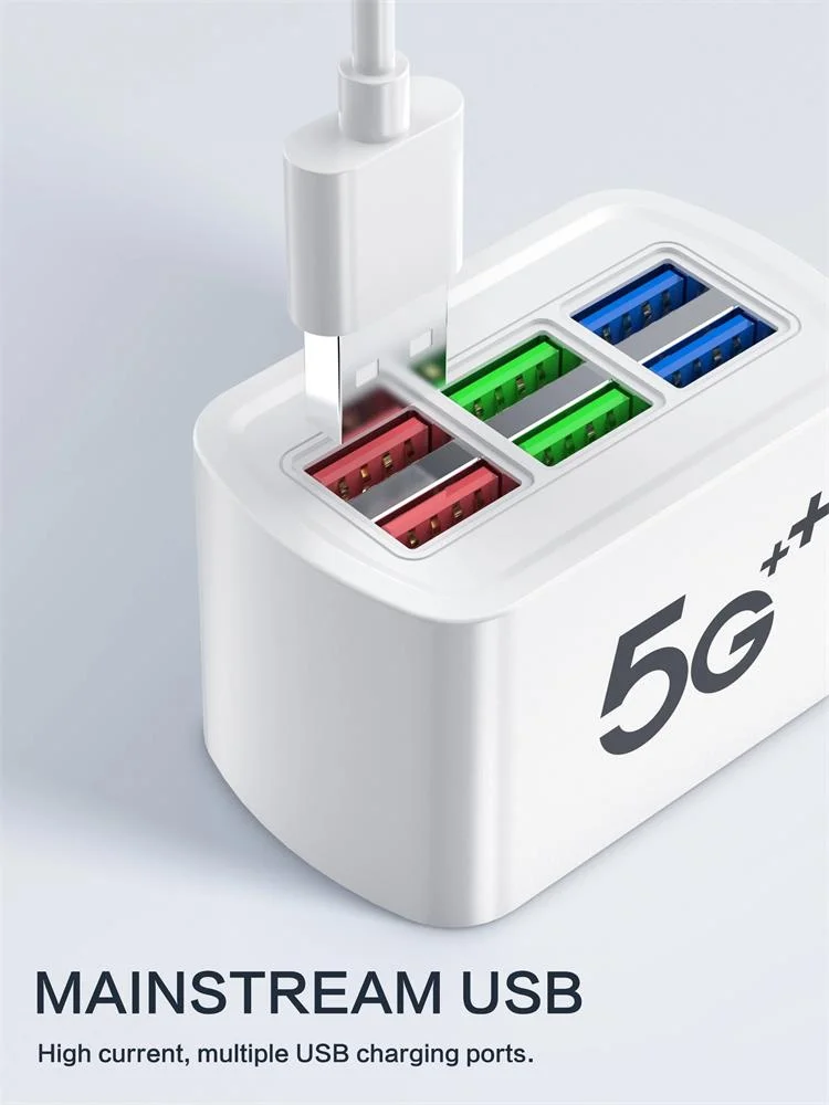 Cargador USB rápido 6 en 1, regleta de alimentación, estación de carga de escritorio, cable de 1m, adaptador de concentrador USB de carga rápida para iPhone, Xiaomi y hogar