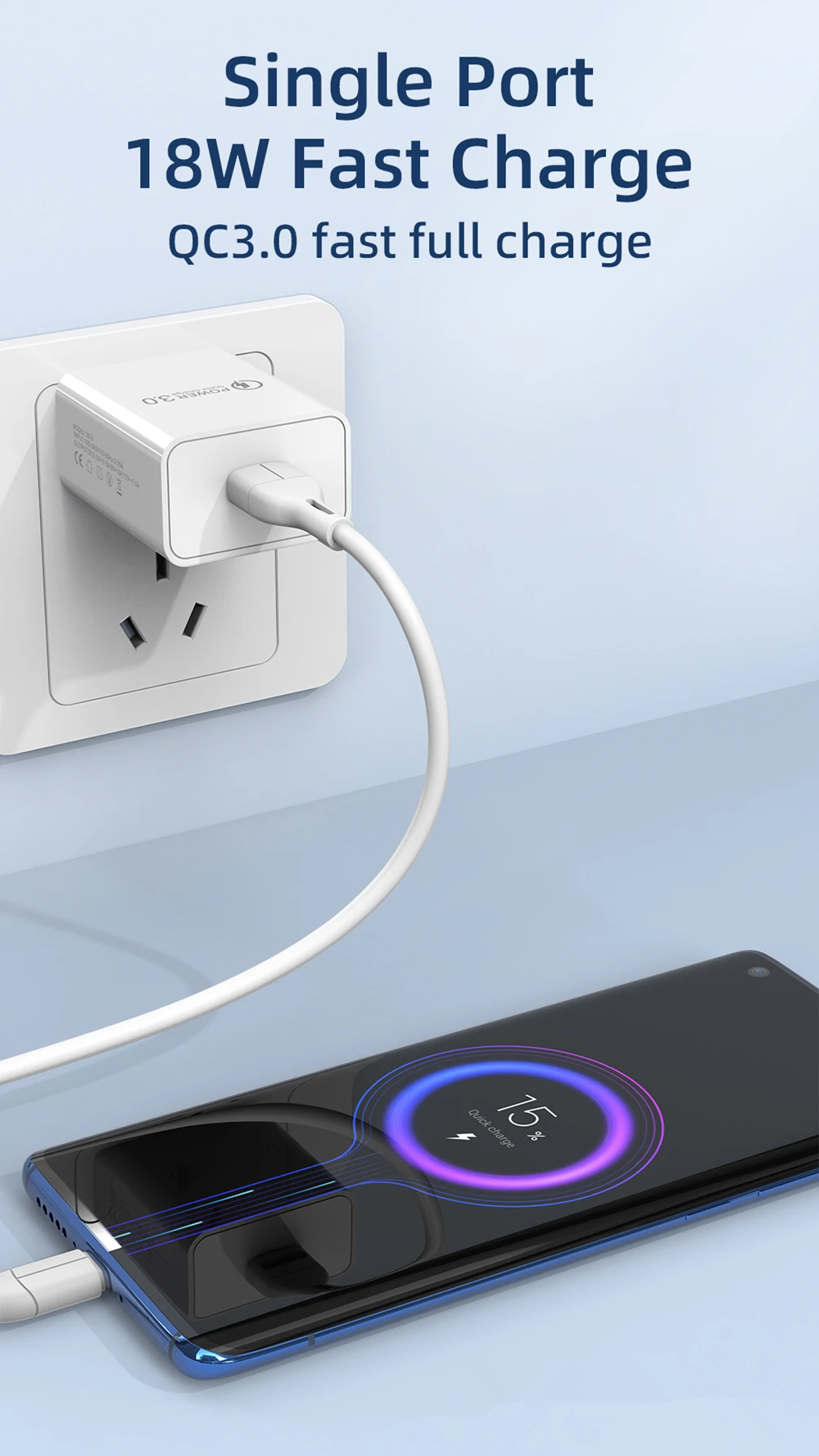 Cargador USB rápido QC3.0 para iPhone 6S 7 8 14 Plus X XR XS 11 12 13 Pro Max SE 2020 5 5S 5C Samsung Xiaomi Redmi POCO Huawei Honor OPPO realme VIVO iQOO Cargador de pared USB de viaje para teléfono Android de carga rápida