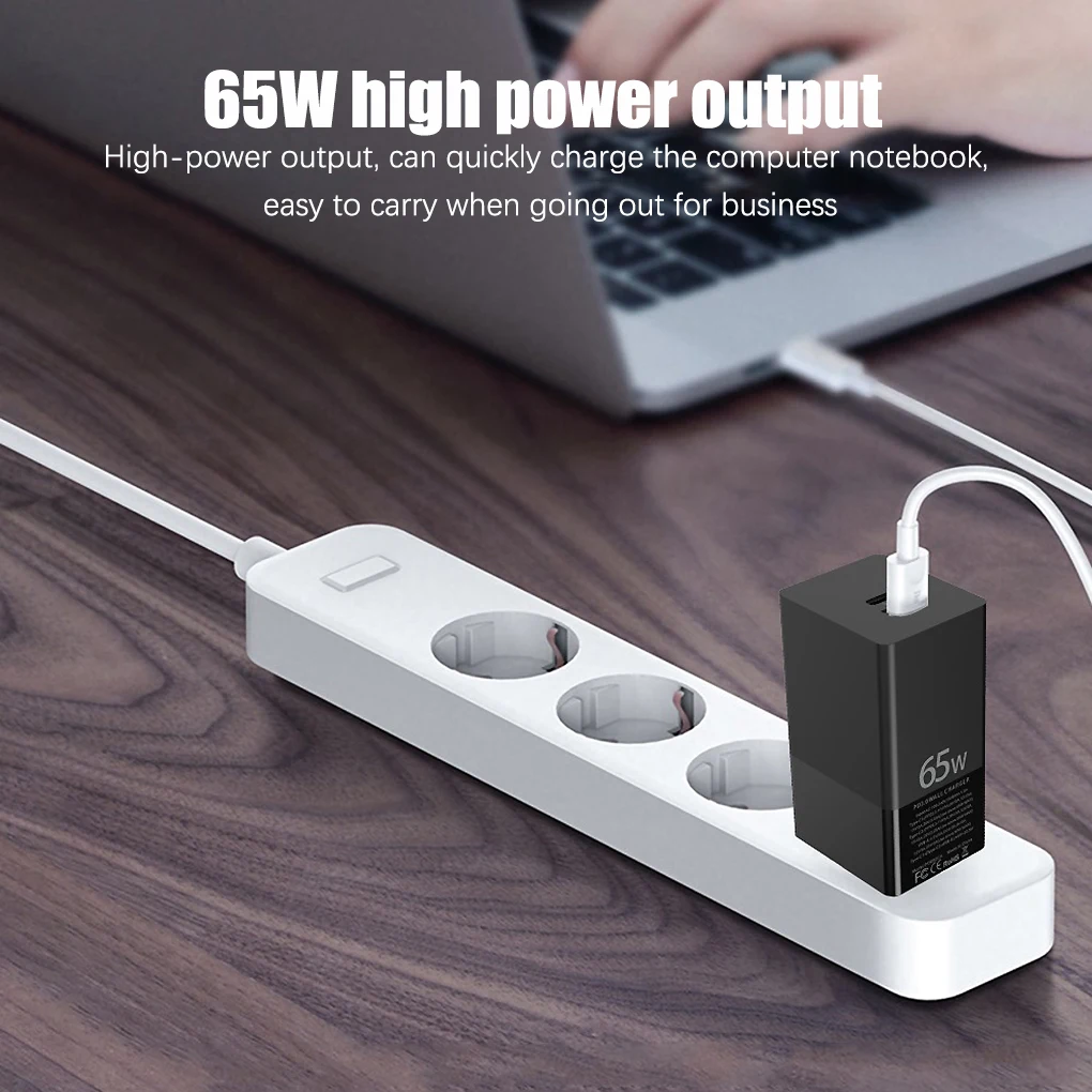 Comprar Cargador USB tipo C de 65W, adaptador portátil de carga rápida QC3 0, para teléfono, ordenador, enchufe de la UE