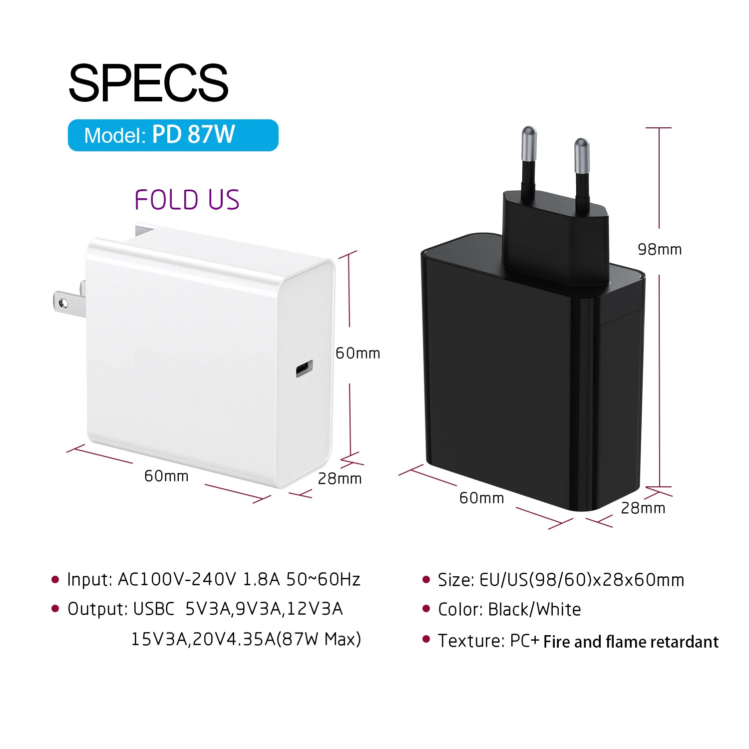 Cargador Usb tipo C de 87W, adaptador de carga rápida para portátil Macbook Air Pro Asus Lenovo Hp Samsung, adaptador de corriente USB C