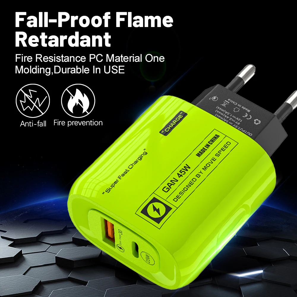 [High Power charging] : Our 45W 1PD+1USB charger is a high capacity charging station that supports 45W output.