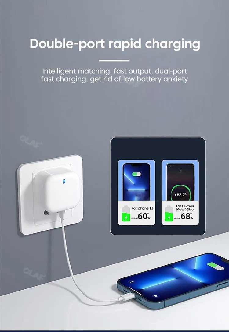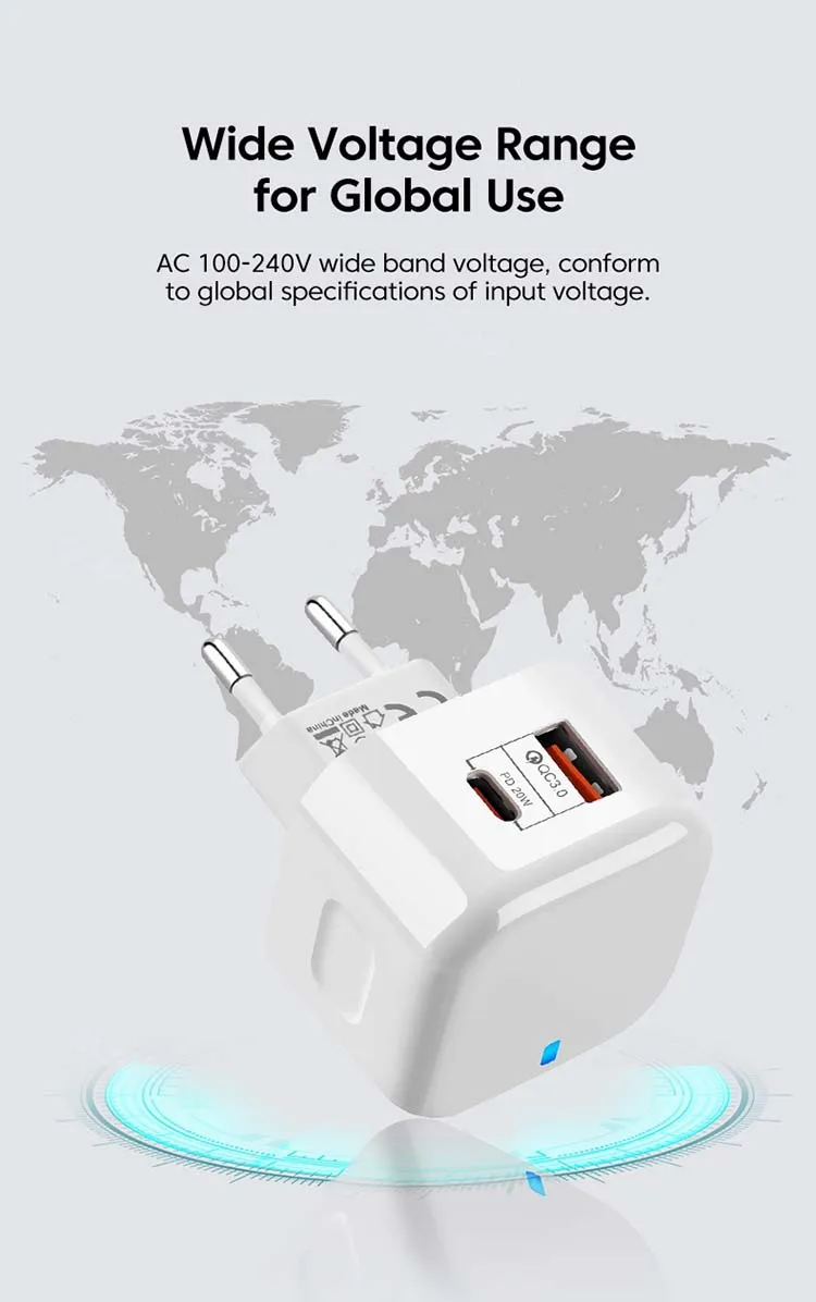 Comprar Cargador USB tipo C para teléfono móvil, adaptador de carga rápida 3,0, PD20W, para iPhone 14, 13, 12, Xiaomi, Samsung y Huawei