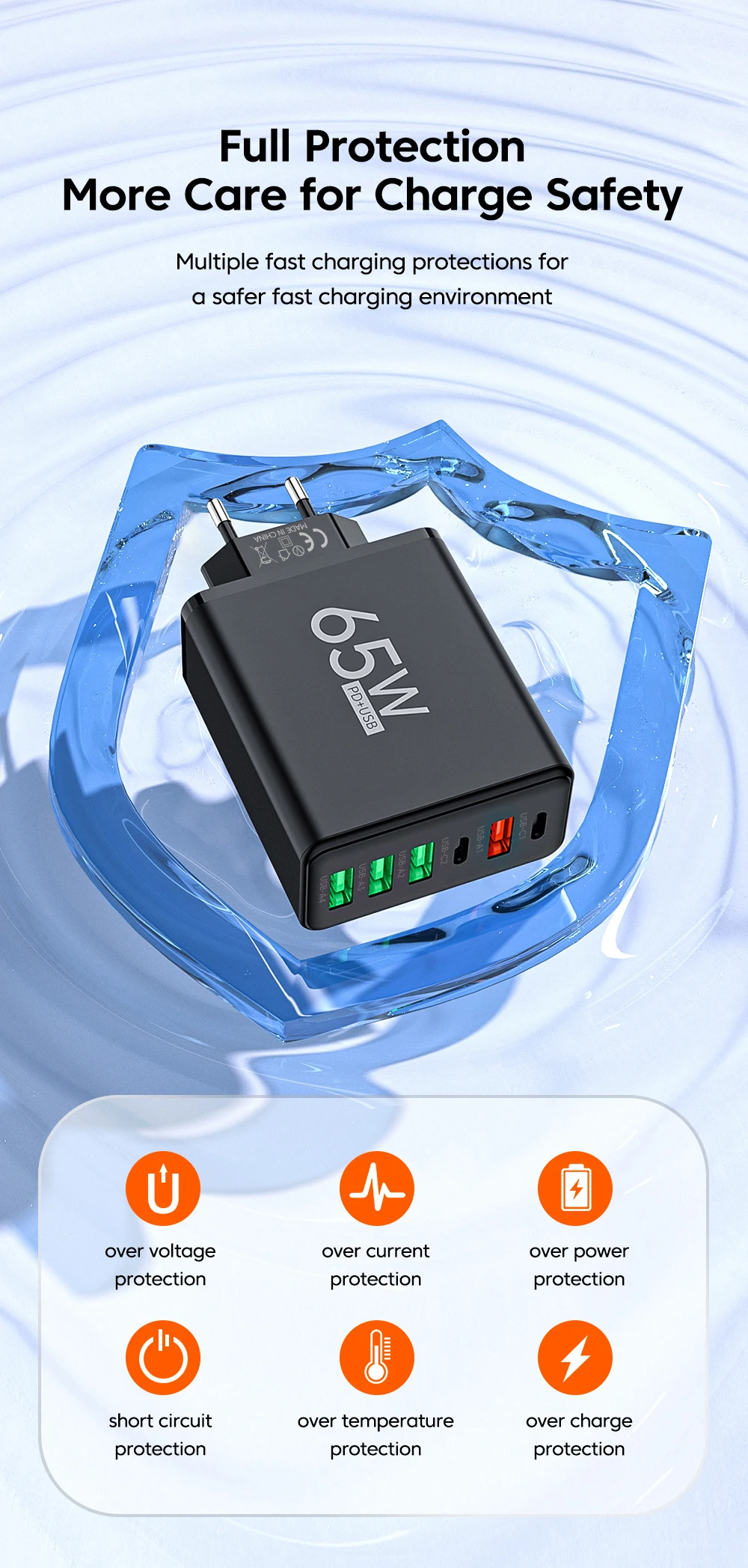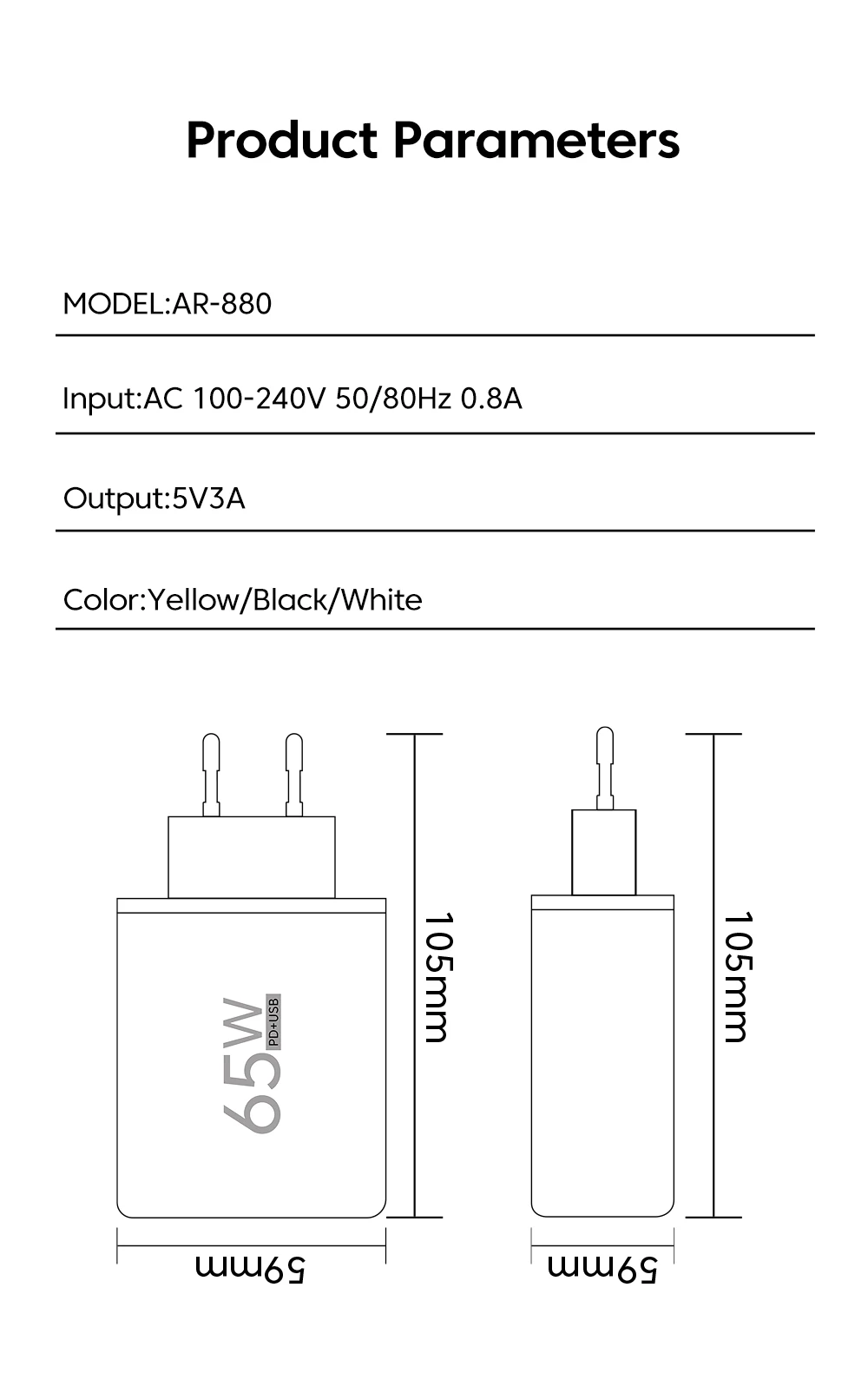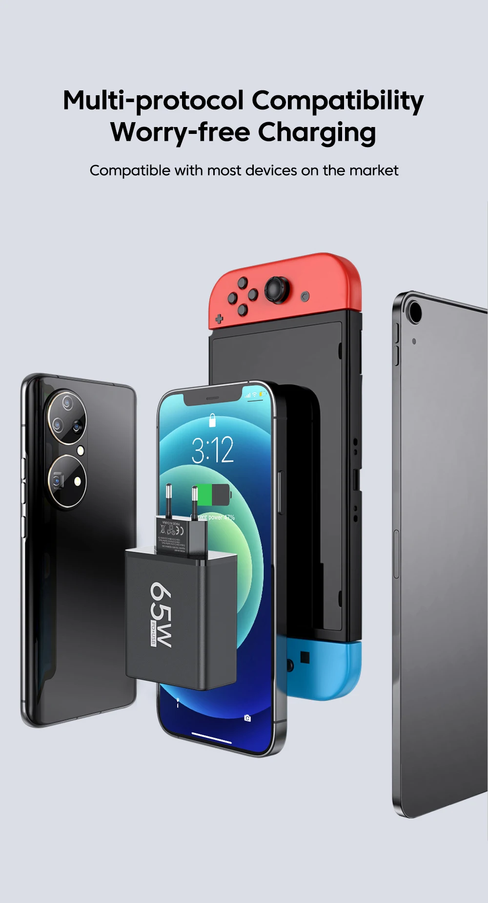Funciona, pero definitivamente no son 65W. No hay carga rápida incluso con un dispositivo conectado. Se siente muy ligero y plástico.