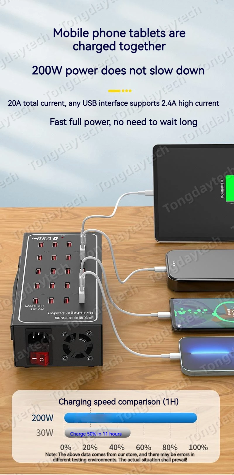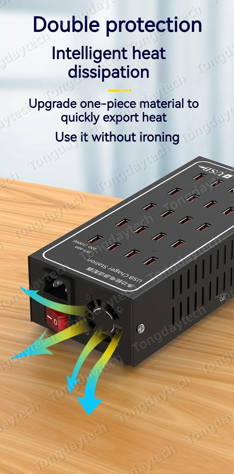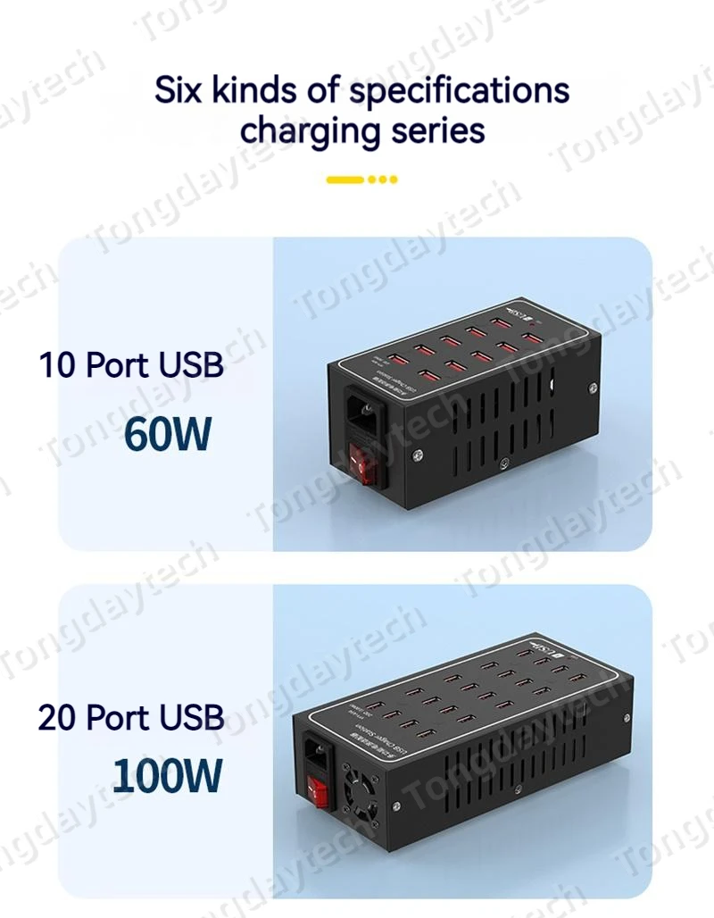 300W/250W/200W/150W/100W Estación de carga USB múltiple de metal universal 60 puertos Cargador de carga rápida USB portátil para Iphone 14 13 Samsung S23U S22