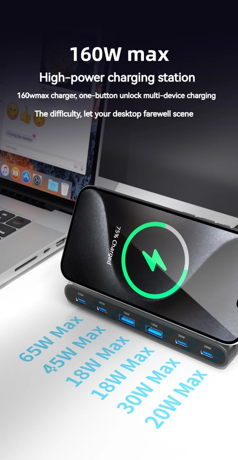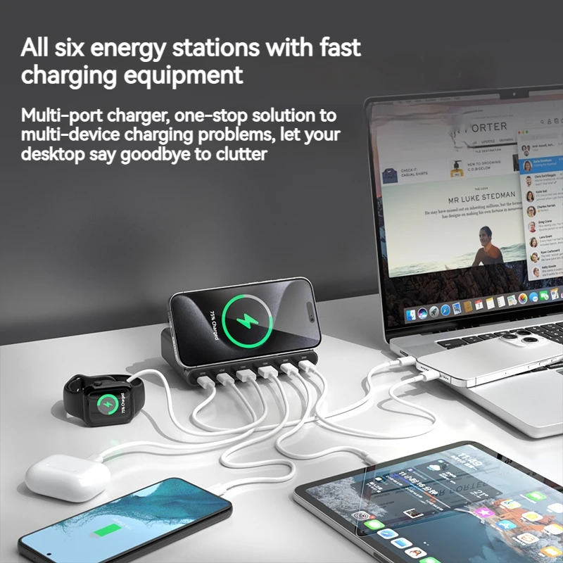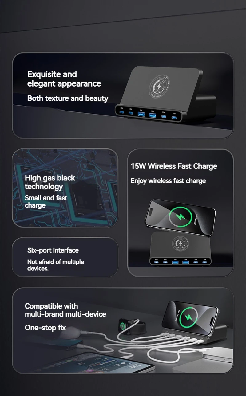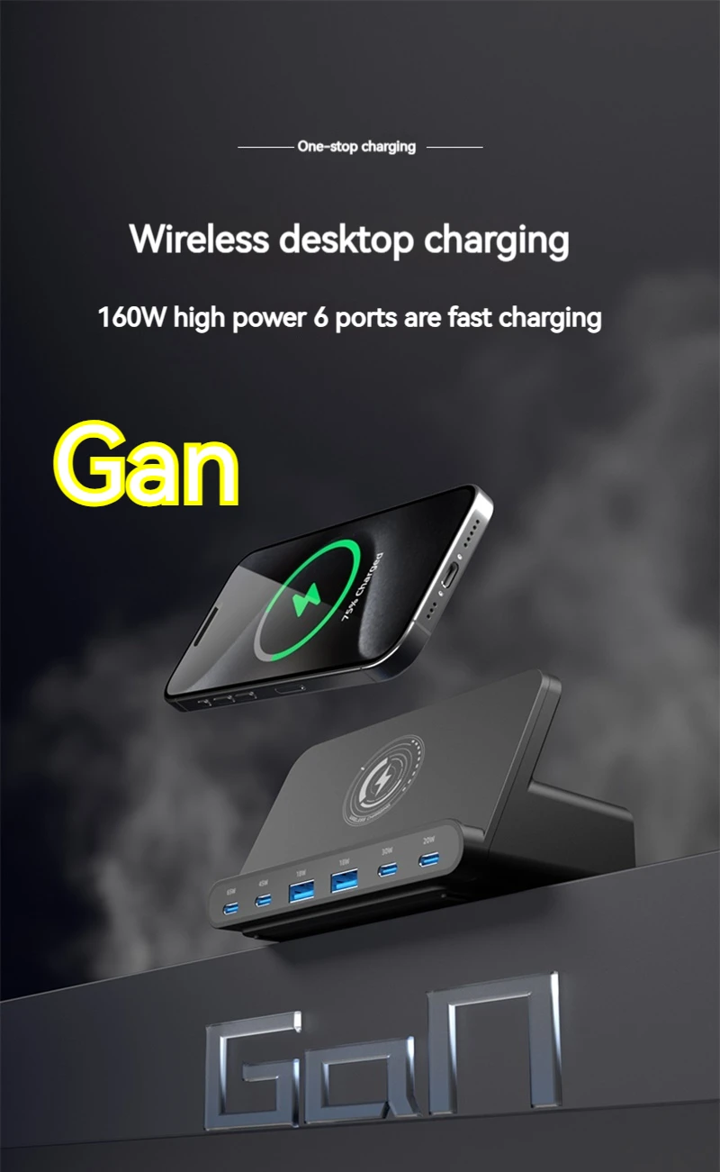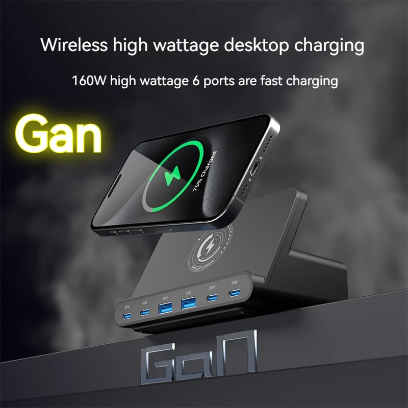 160W Universal USB PD 65W 6 puertos Usb cargador estación de carga inalámbrica soporte para Ipad Iphone 15 14 13 Pro Max Samsung S24 S23