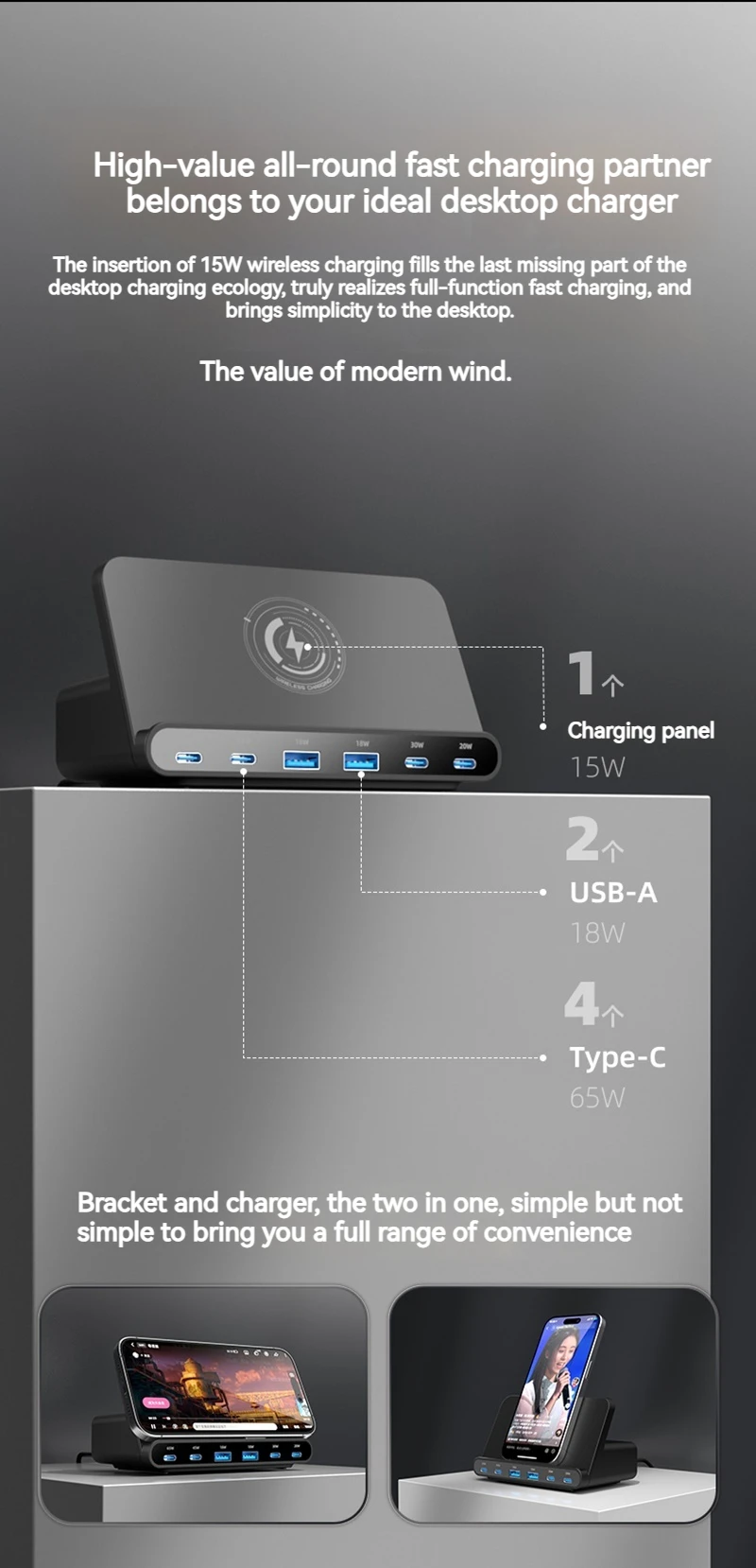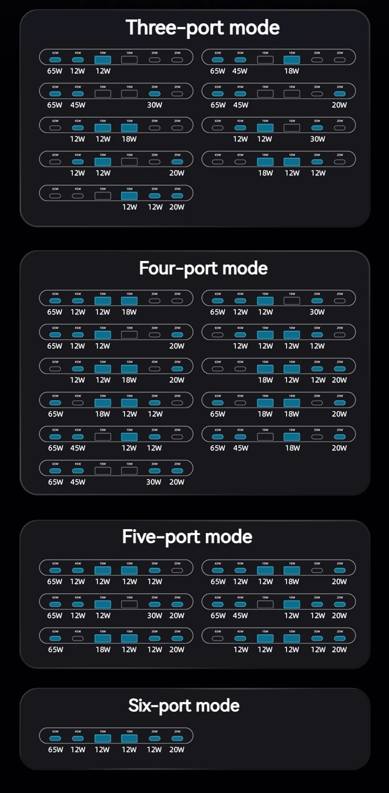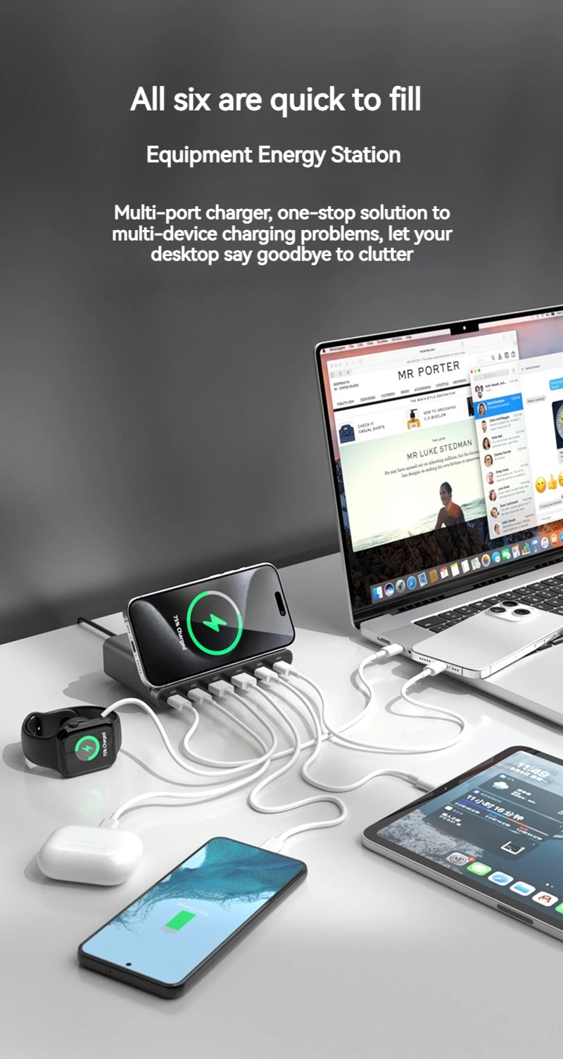 160W Universal USB PD 65W 6 puertos Usb cargador estación de carga inalámbrica soporte para Ipad Iphone 15 14 13 Pro Max Samsung S24 S23