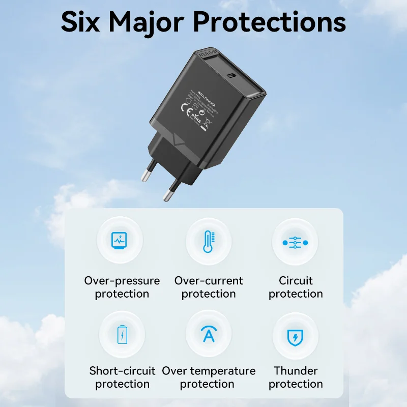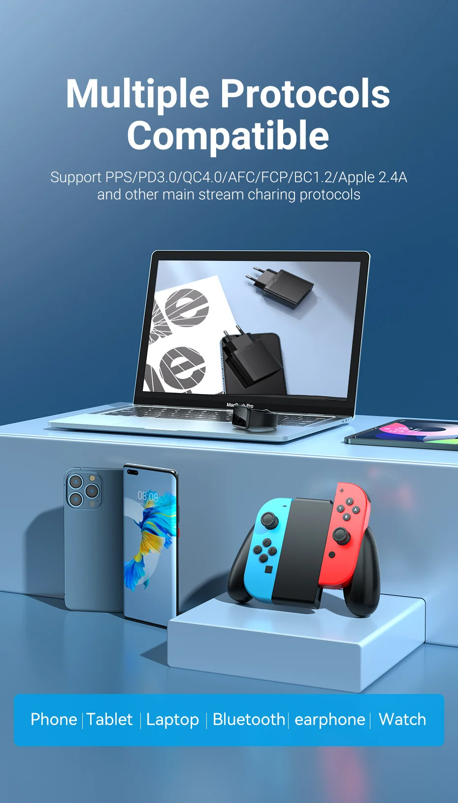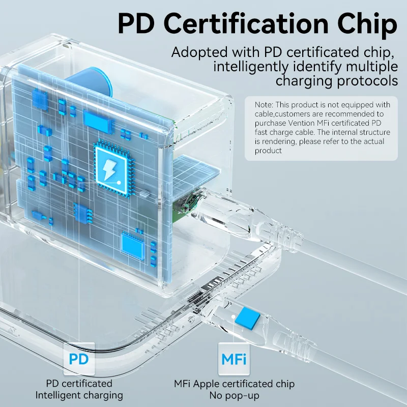 Adoptado con chip certificado PD, identifica inteligentemente múltiples protocolos de carga