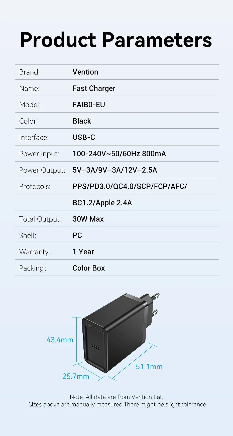 Comprar Cargador Vention USB C 30W tipo C para iPhone 13 12 cargador de teléfono portátil de carga rápida para Samsung S20 Xiaomi PD cargador
