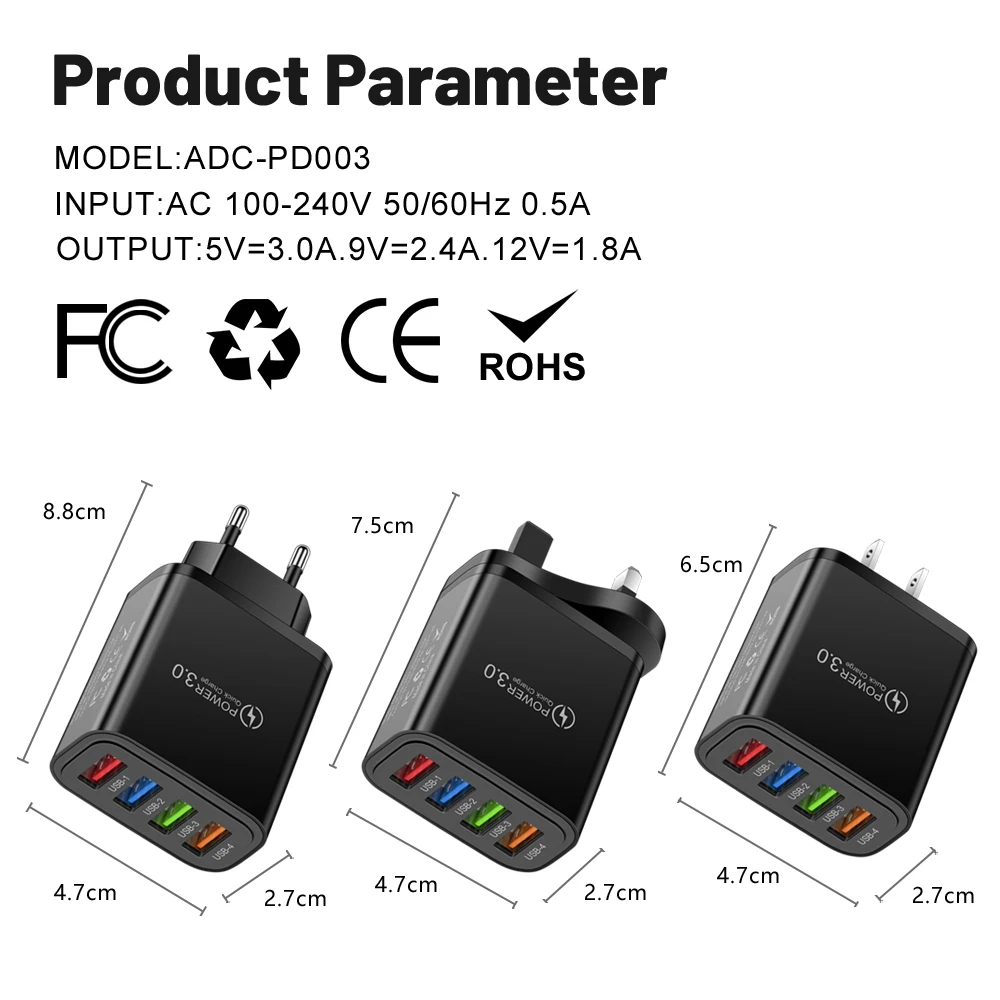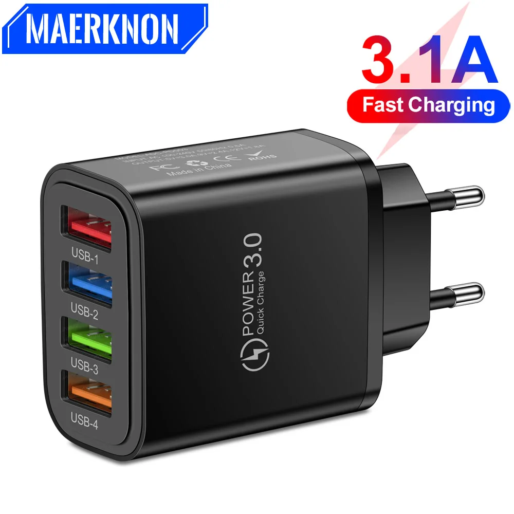 Cargador de viaje USB 3.1A con enchufe europeo/estadounidense, carga rápida QC3.0, adaptador de carga de pared para teléfono móvil iPhone 15 14 Samsung Xiaomi