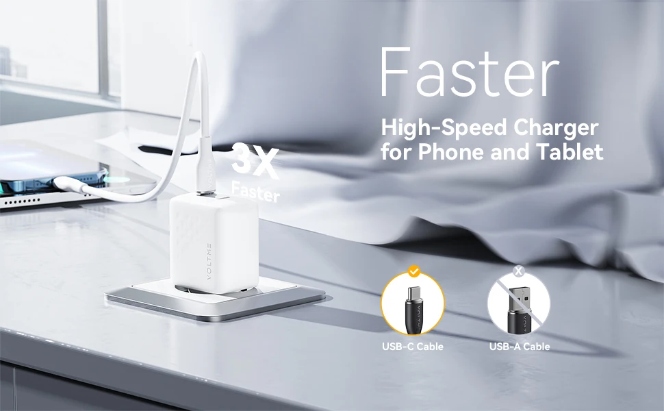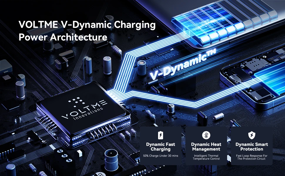 Los cargadores rápidos VOLTME USB C adoptan la última tecnología V-Dynamic que proporciona una carga más segura y confiable.3 veces más rápido que los cargadores de pared convencionales, puedes cargar el iPhone 13 del 0% al 50% en 30 minutos, lo que se traduce en una carga más eficiente.