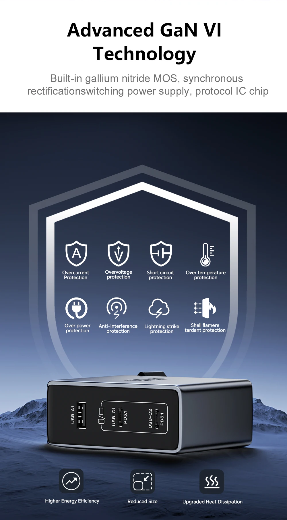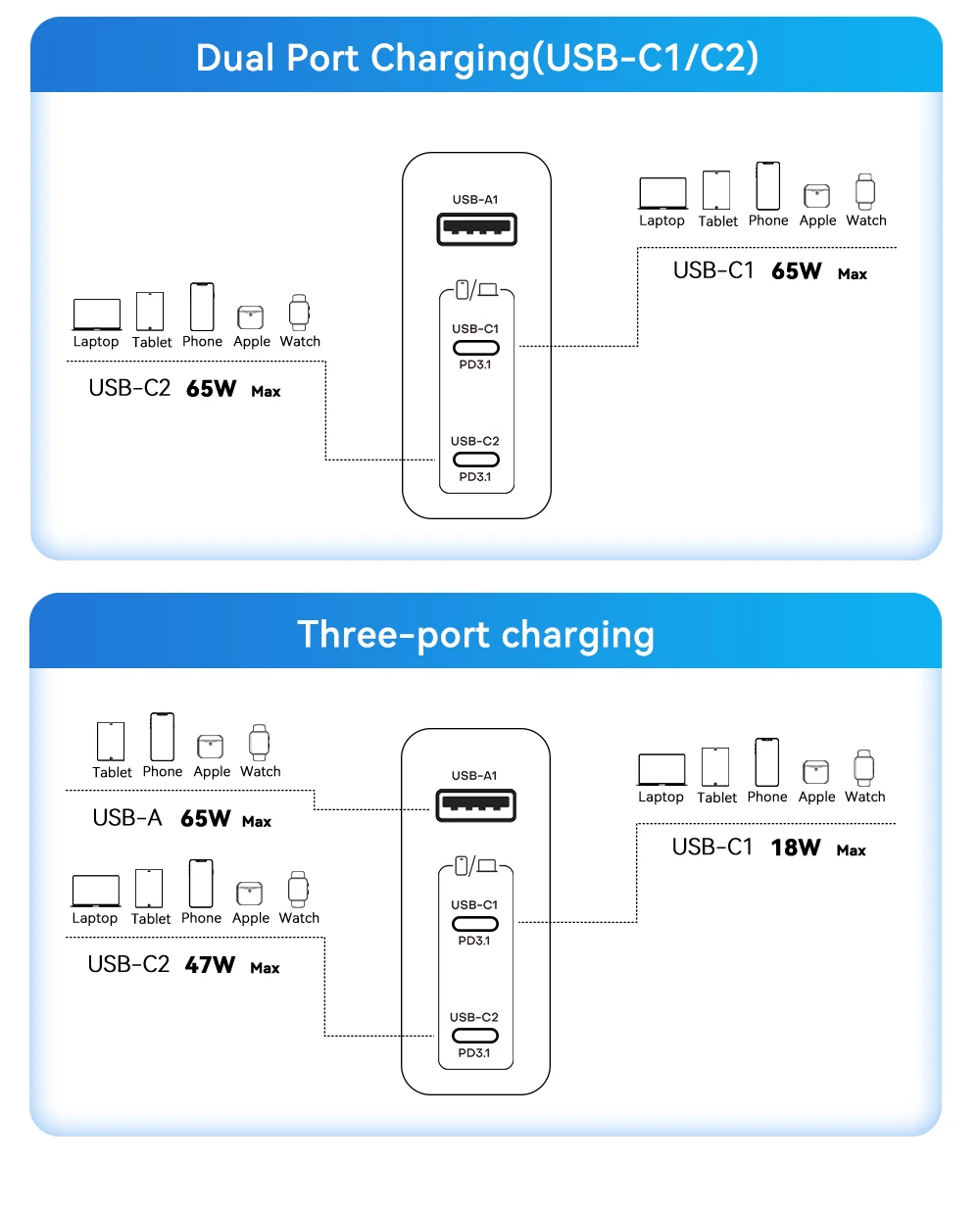 ⚡El puerto tipo C1/C2 es compatible con FCP/SCP/AFC/QC3.0/Apple2.4A/Samsung 2A/100W 65W 47W 45W 35W 20W 18W PD3.0/PD3.1/PPS.