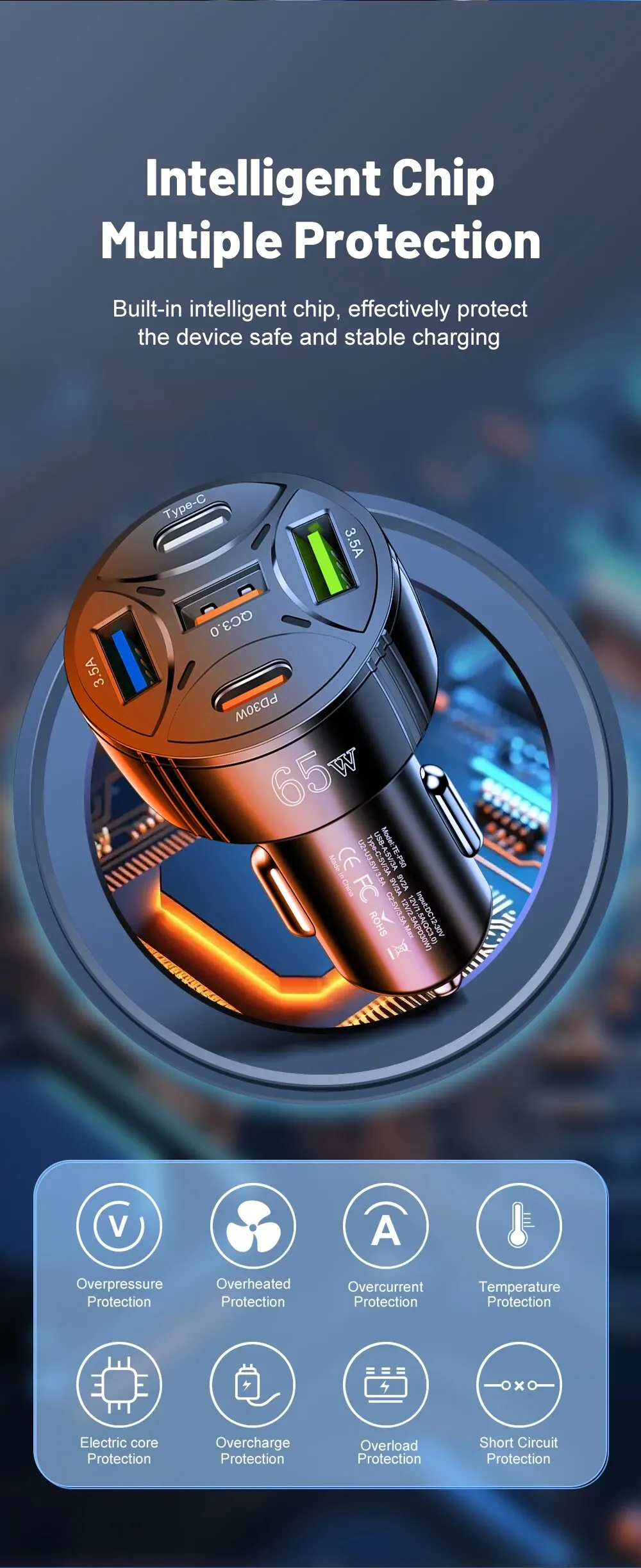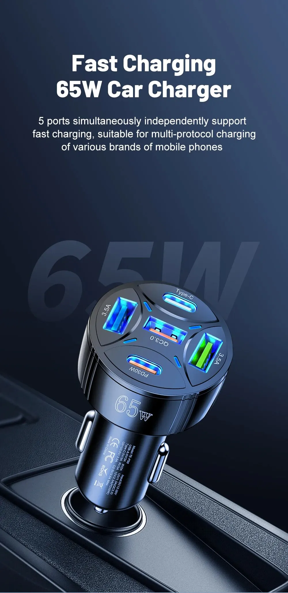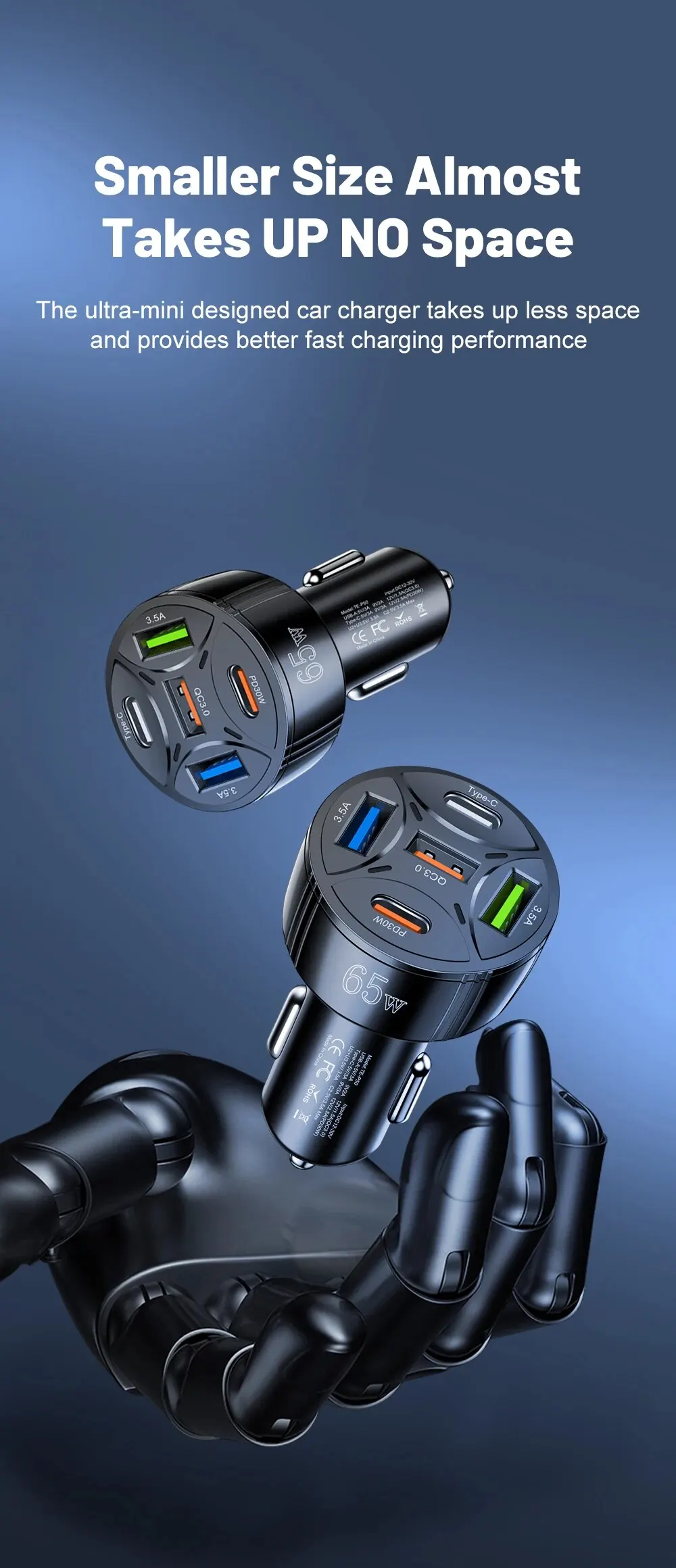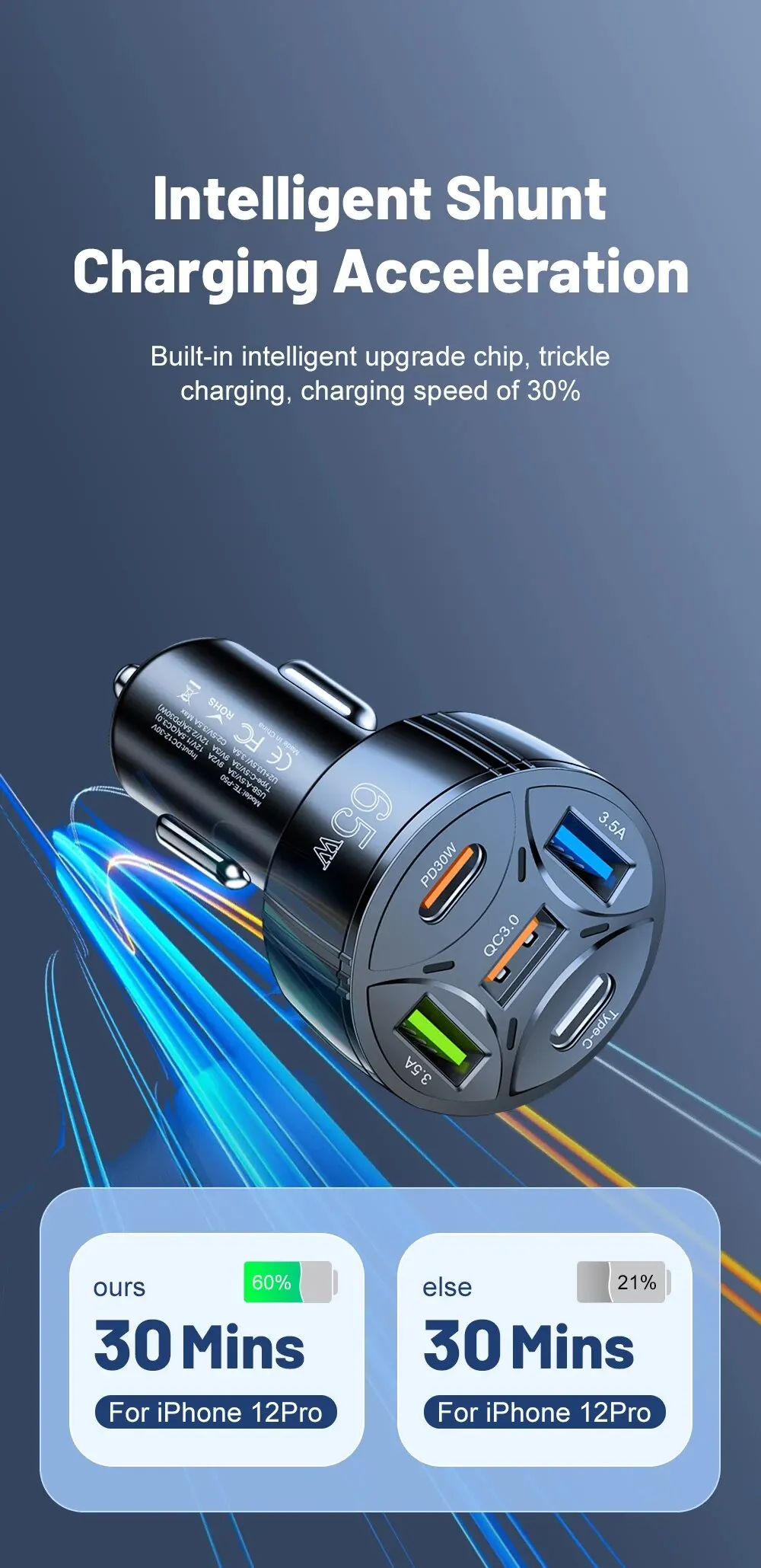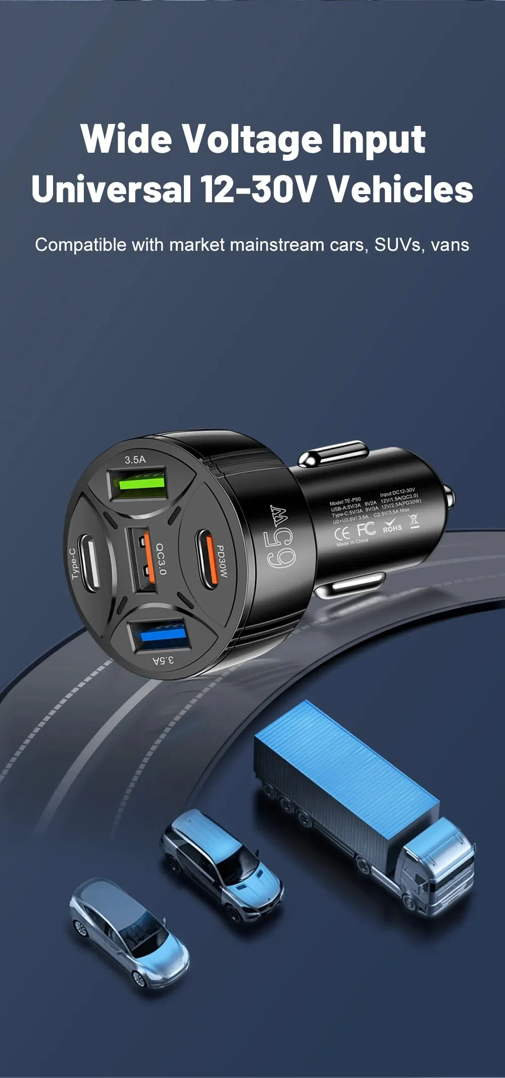 • Salida de alta potencia:Con una potencia de salida máxima de 30 W, este cargador para automóvil puede manejar incluso los dispositivos que consumen más energía.