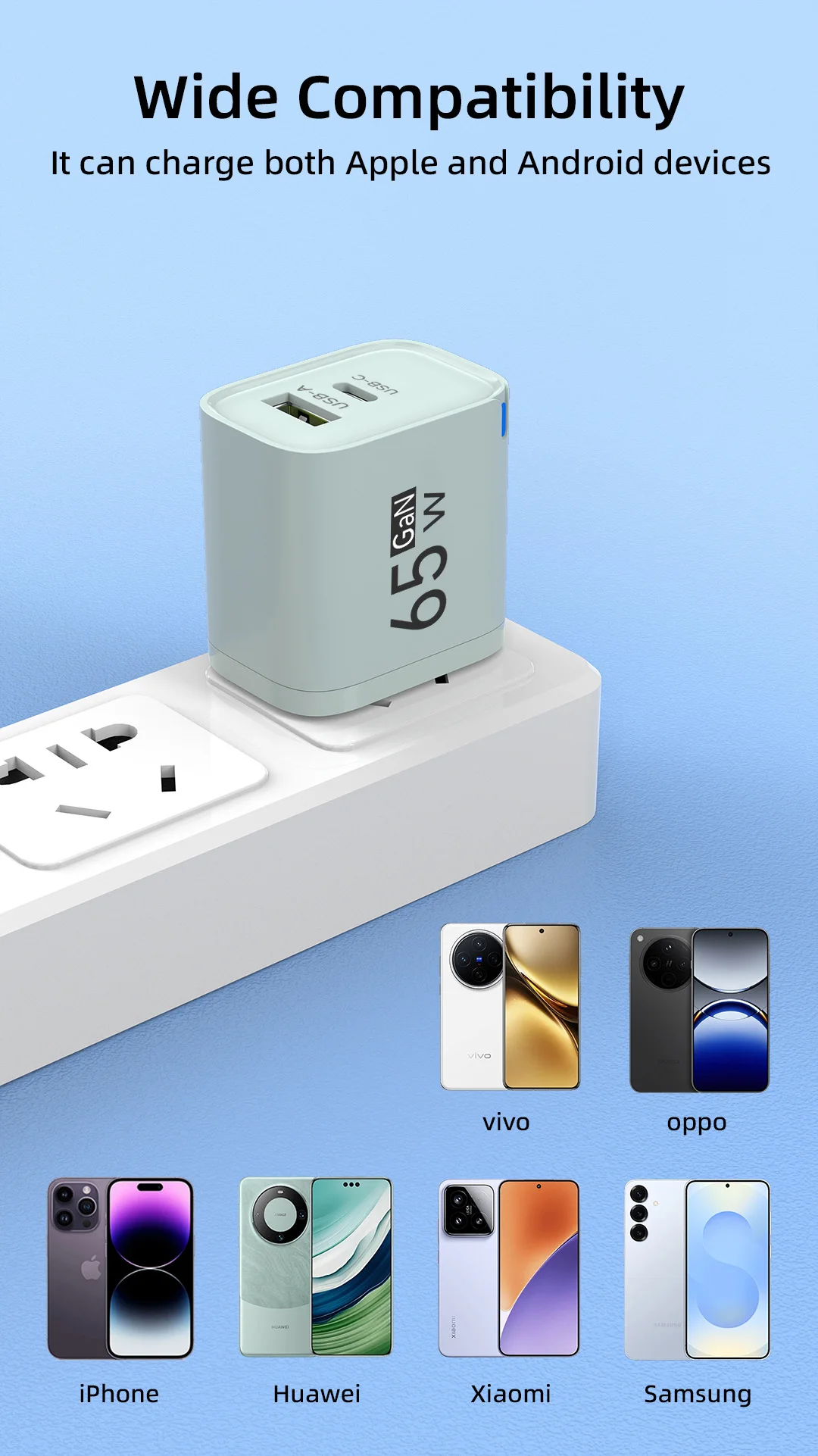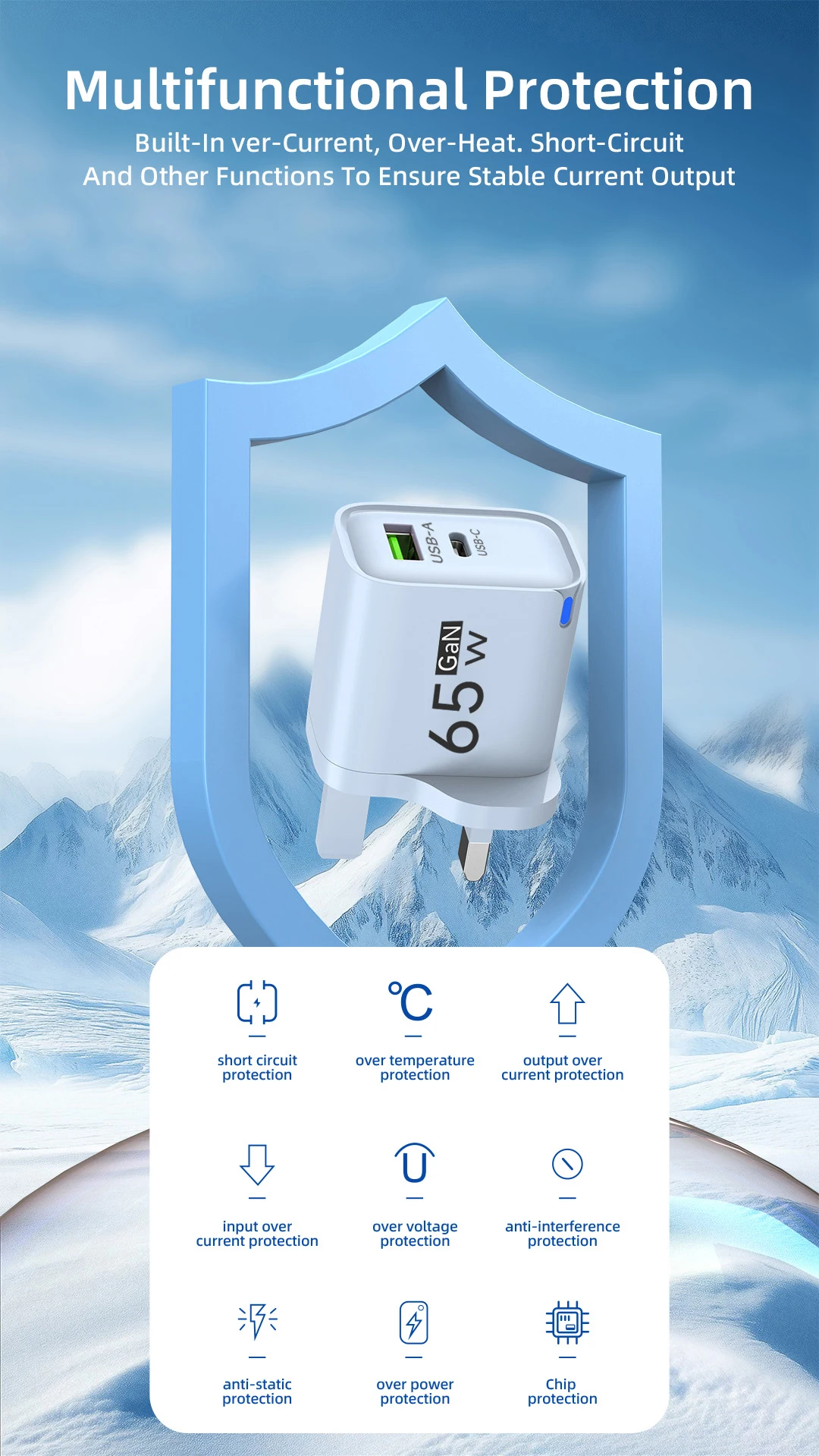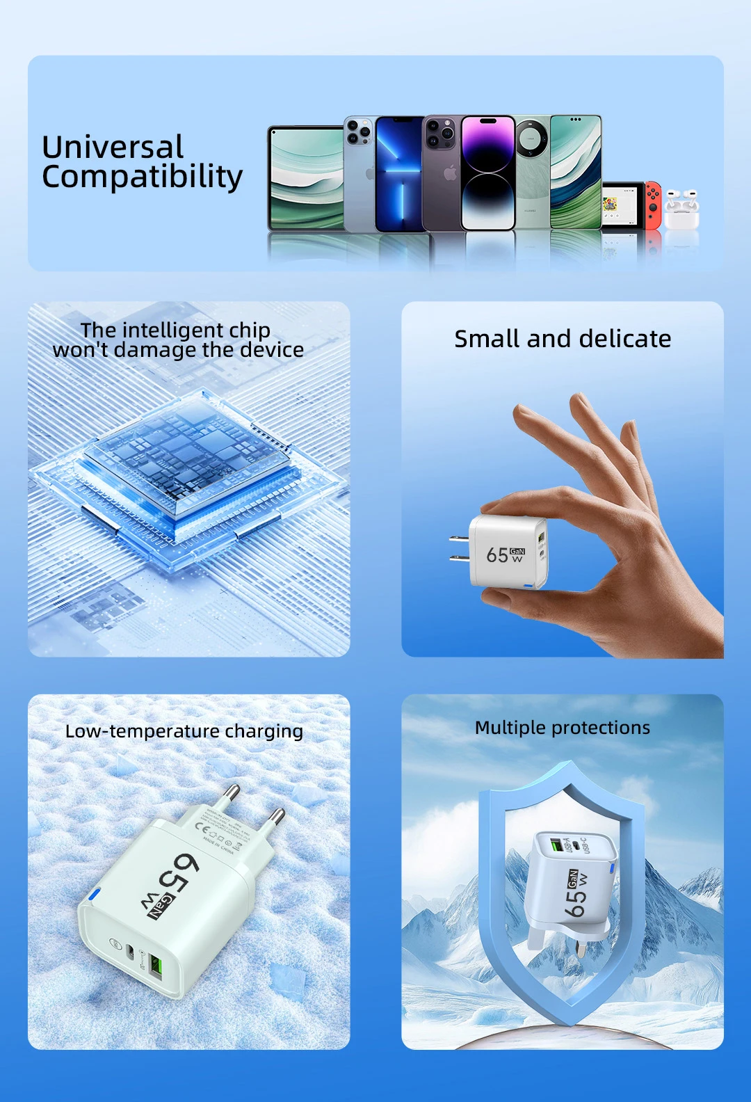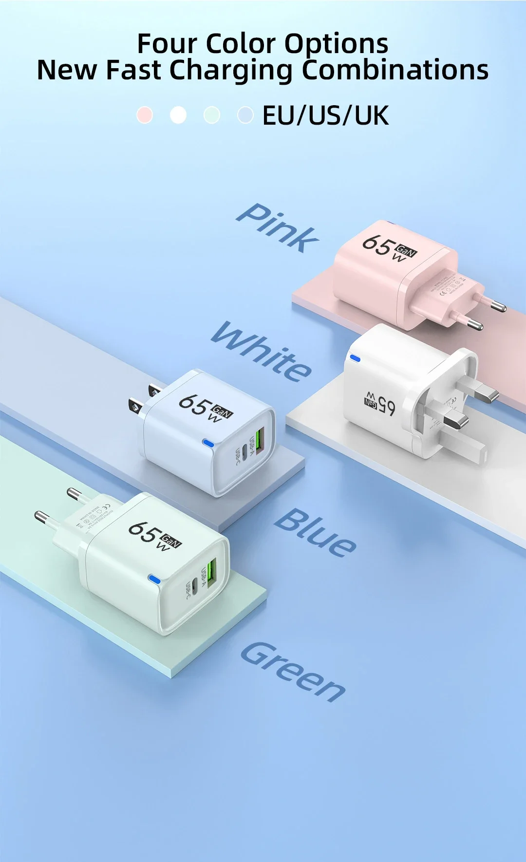 Comprar Cargadores GaN de 65W, cargador USB C de carga rápida 3,0 tipo C, carga rápida para iPhone 15 16 Pro Max Samsung S24 Xiaomi 14 15