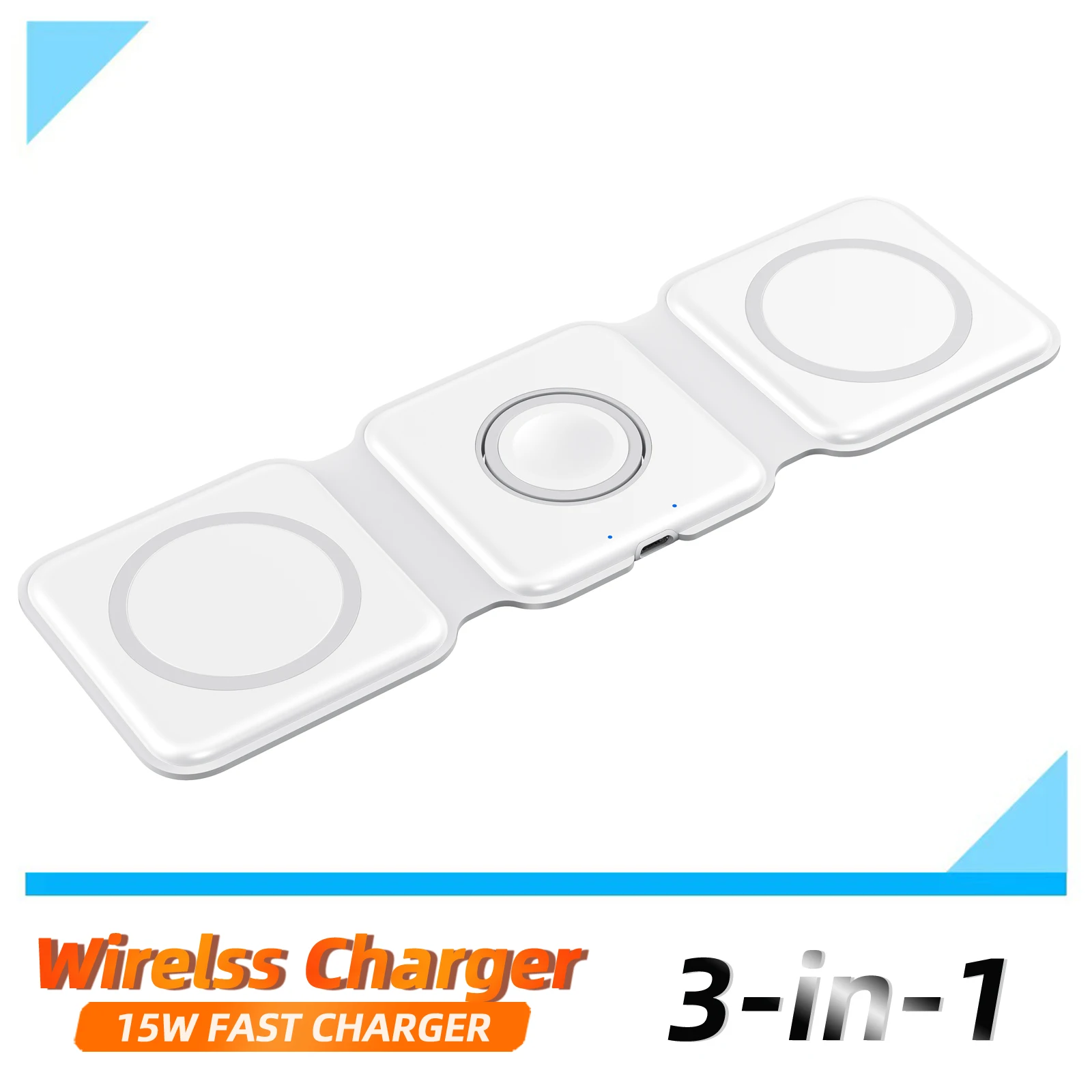Comprar Cargadores inalámbricos magnéticos 3 en 1 para iPhone 11, 12, 13 Pro Max, estación de carga rápida de 15W para Apple Watch/Airpods
