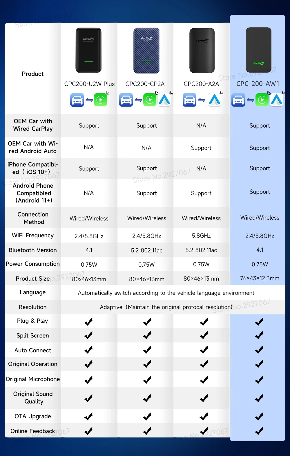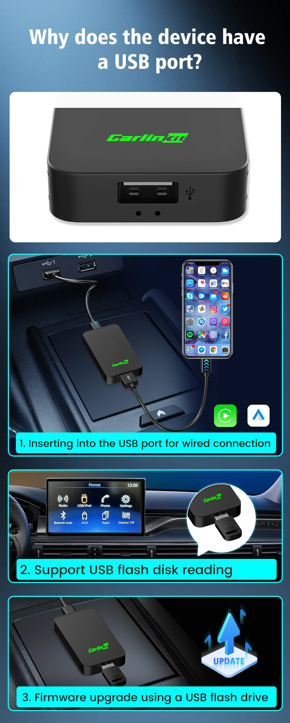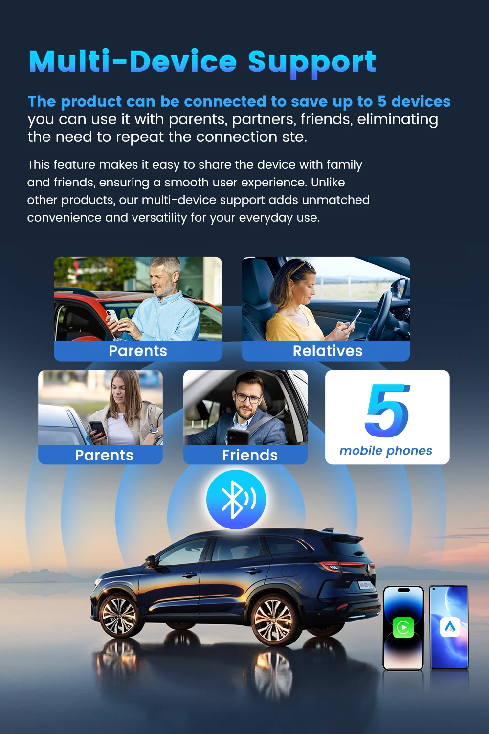 1. Si la pantalla de su automóvil solo admite Carplay con cable, solo puede usar carplay inalámbrico.Si la pantalla de su automóvil solo admite Android Auto con cable, solo puede usar Android Auto inalámbrico.