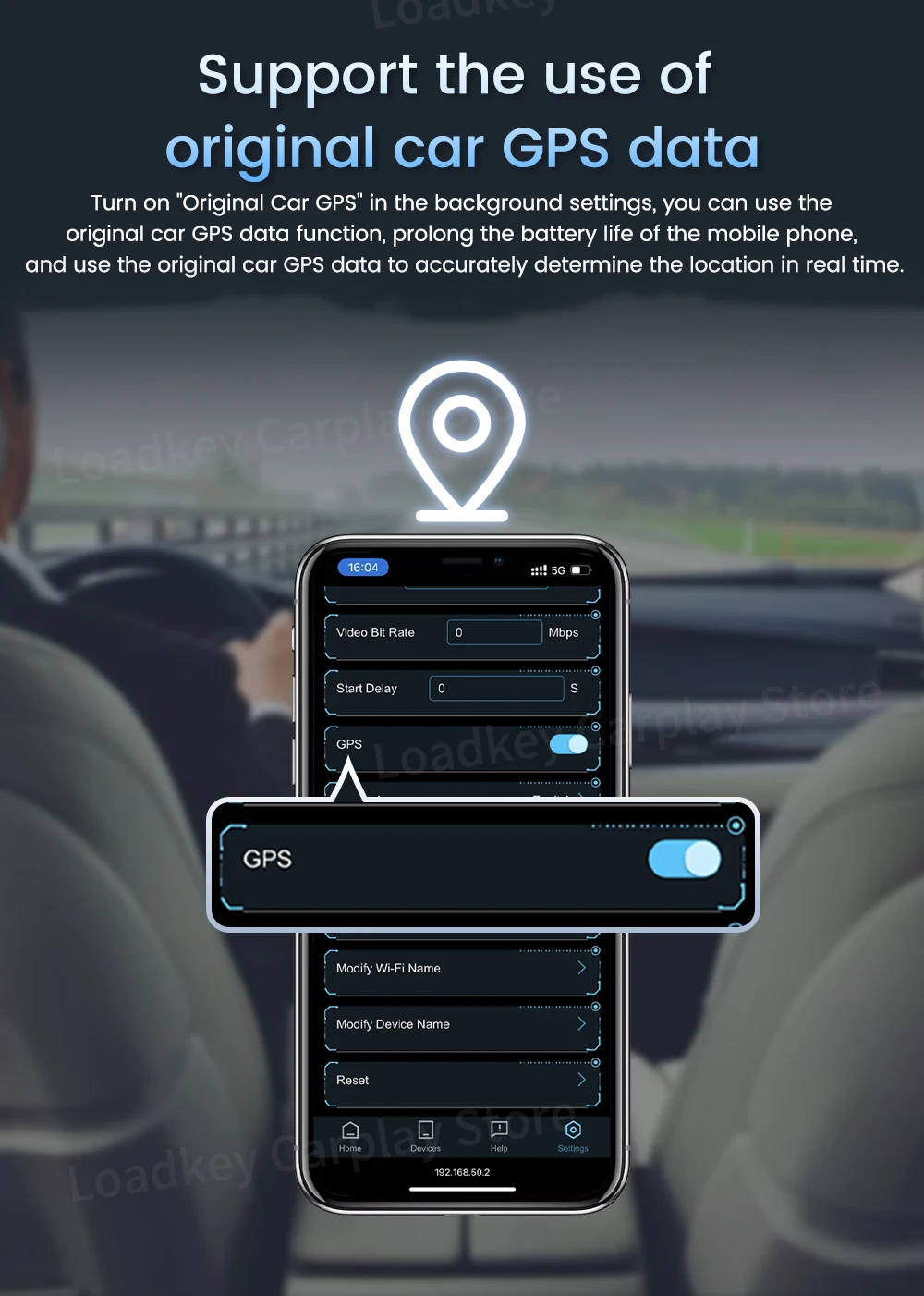 Encienda "GPS original del automóvil" en la configuración de fondo, puede usar la función de fecha original del GPS del automóvil, prolongar la duración de la batería del teléfono móvil y usar la fecha original del GPS del automóvil para calcular con precisión la ubicación en tiempo real.