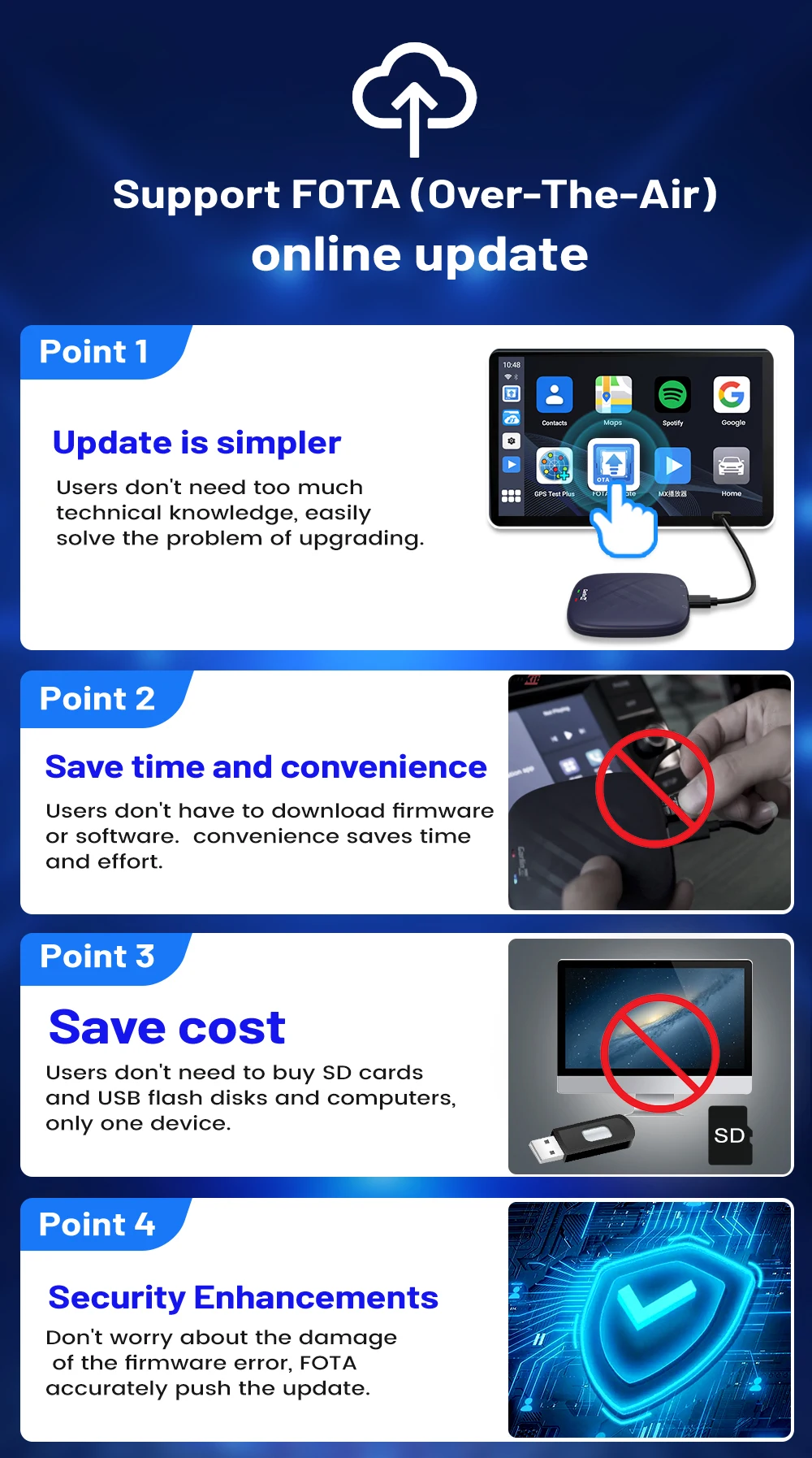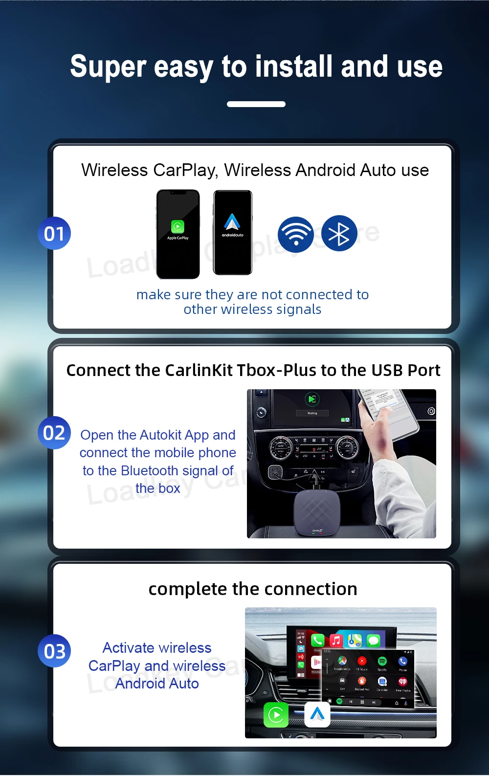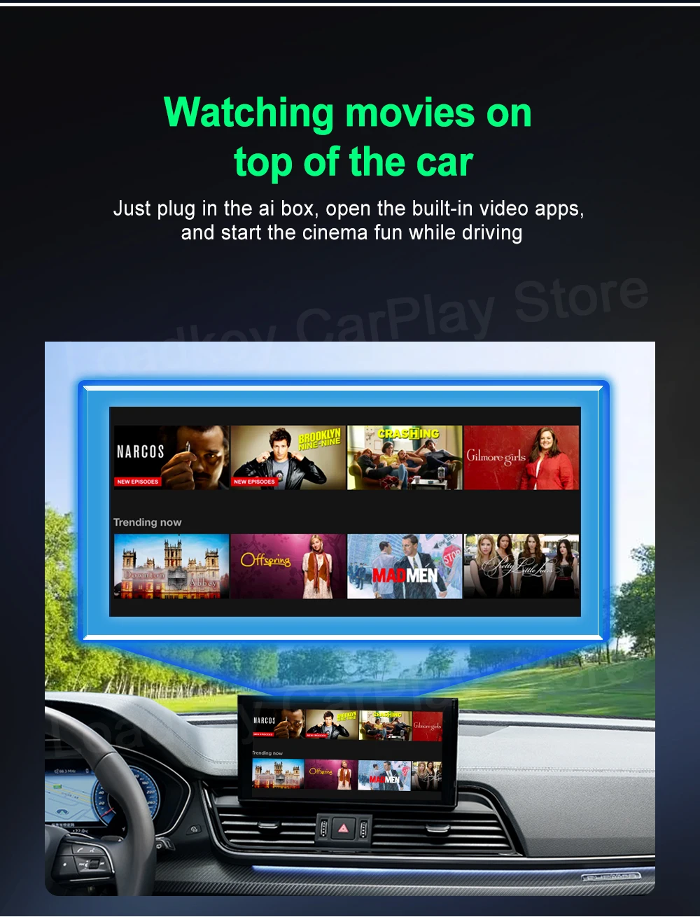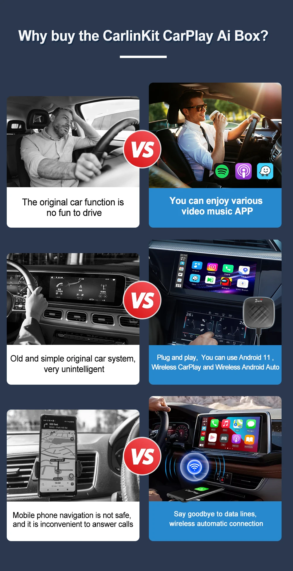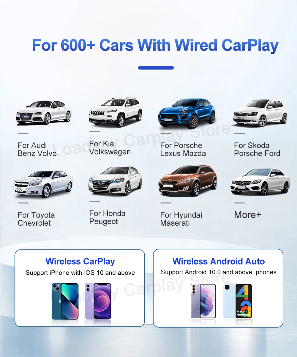 CarPlay inalámbrico y coche inalámbrico de AndroidAdecuado para familias con teléfonos Android y para iPhones o personas de negocios con múltiples teléfonos.