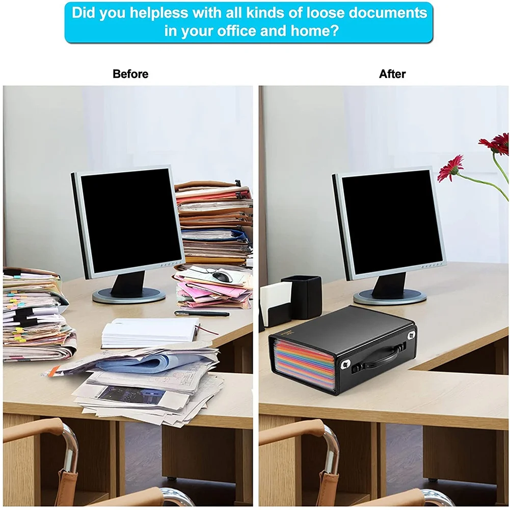 [More Quick Access]24 Individual Pockets with Colorful stylish and Unique insert label design help to classify and find your files effectively, Allow for adding handwritten labels according to what you need.