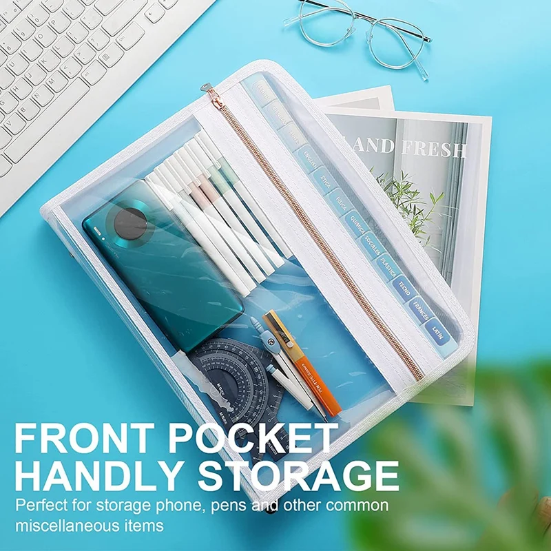 Carpeta de archivos de expansión con cierre de cremallera, bolsa de almacenamiento de archivos de expansión de acordeón de 13 bolsillos, con etiqueta adhesiva para letras