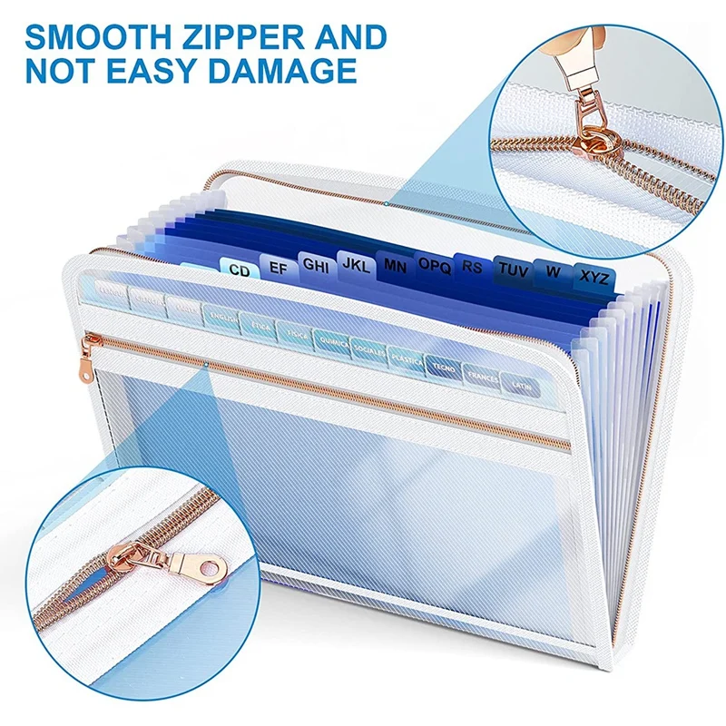 Comprar Carpeta de archivos de expansión con cierre de cremallera, bolsa de almacenamiento de archivos de expansión de acordeón de 13 bolsillos, con etiqueta adhesiva para letras