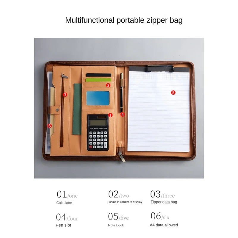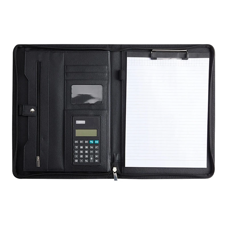 [Professional business padfolio]Open the zipper with multiple business card slots on the left side, Calculator, and pad compartment.Multiple layers make it easy to organize your items. notepad on the right.documents, etc. Open the mouth and you can easily take out things.