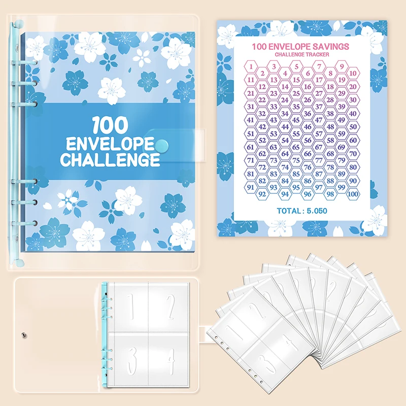Comprar Carpeta de Desafío de Ahorro de dinero, sobre 100, solución motivadora sostenible, papel de carpeta de hojas sueltas para objetivos de ahorro