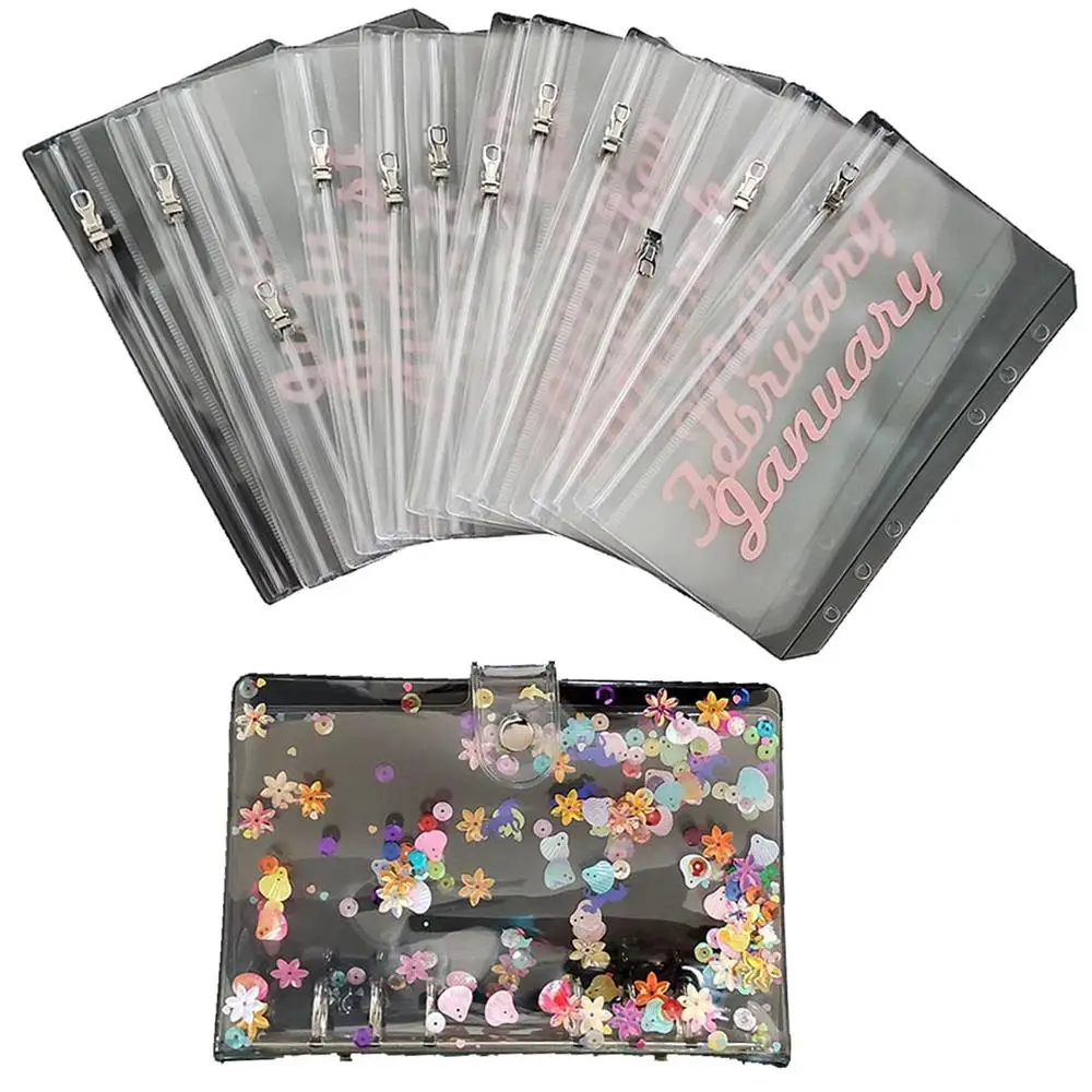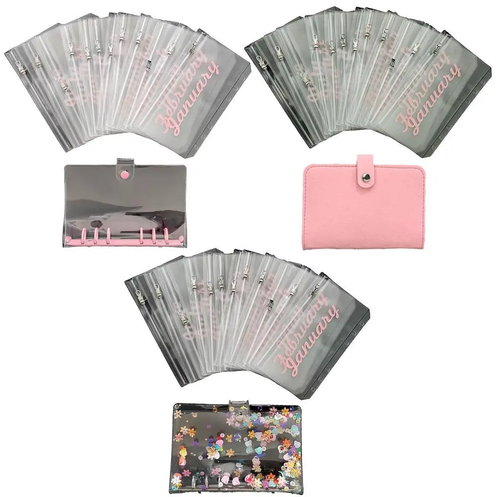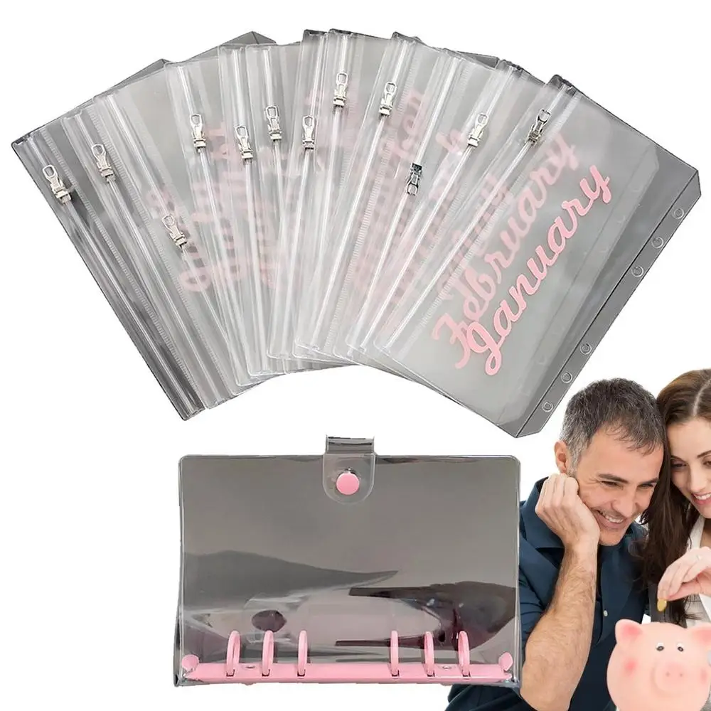Money Challenge Binder A6 Organizador de dinero impermeable con cremallera Carpeta resistente al desgarro Cartera para el trabajo en casa Escuela Reutilizable Mone