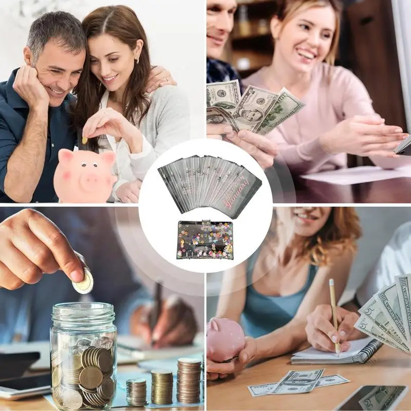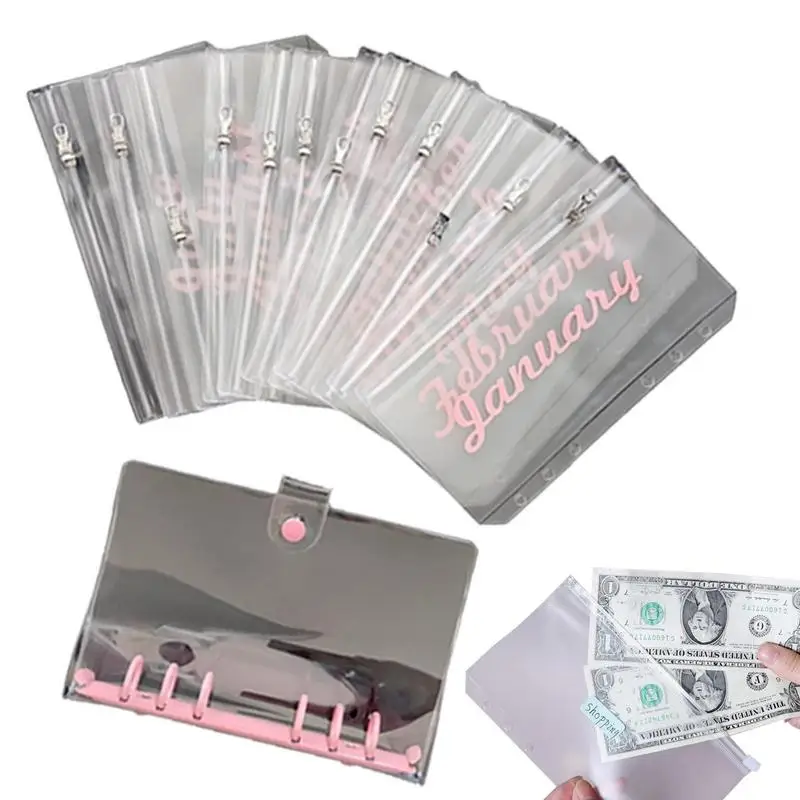 Money Challenge Binder A6 Organizador de dinero impermeable con cremallera Carpeta resistente al desgarro Cartera para el trabajo en casa Escuela Reutilizable Mone