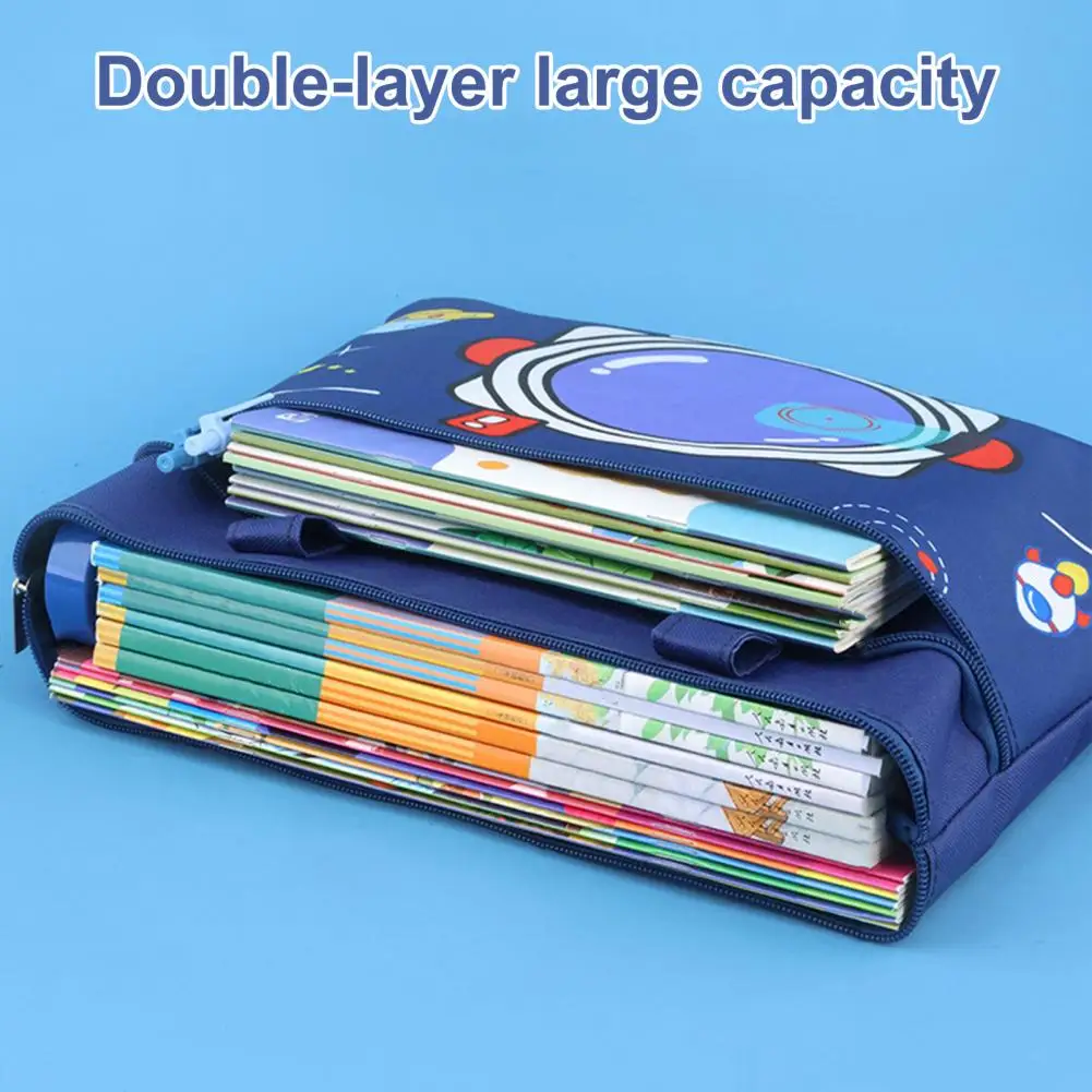 Con un fuerte soporte de carga y una gran capacidad, este archivador de doble capa almacena su libro, tarea y papel de prueba.
