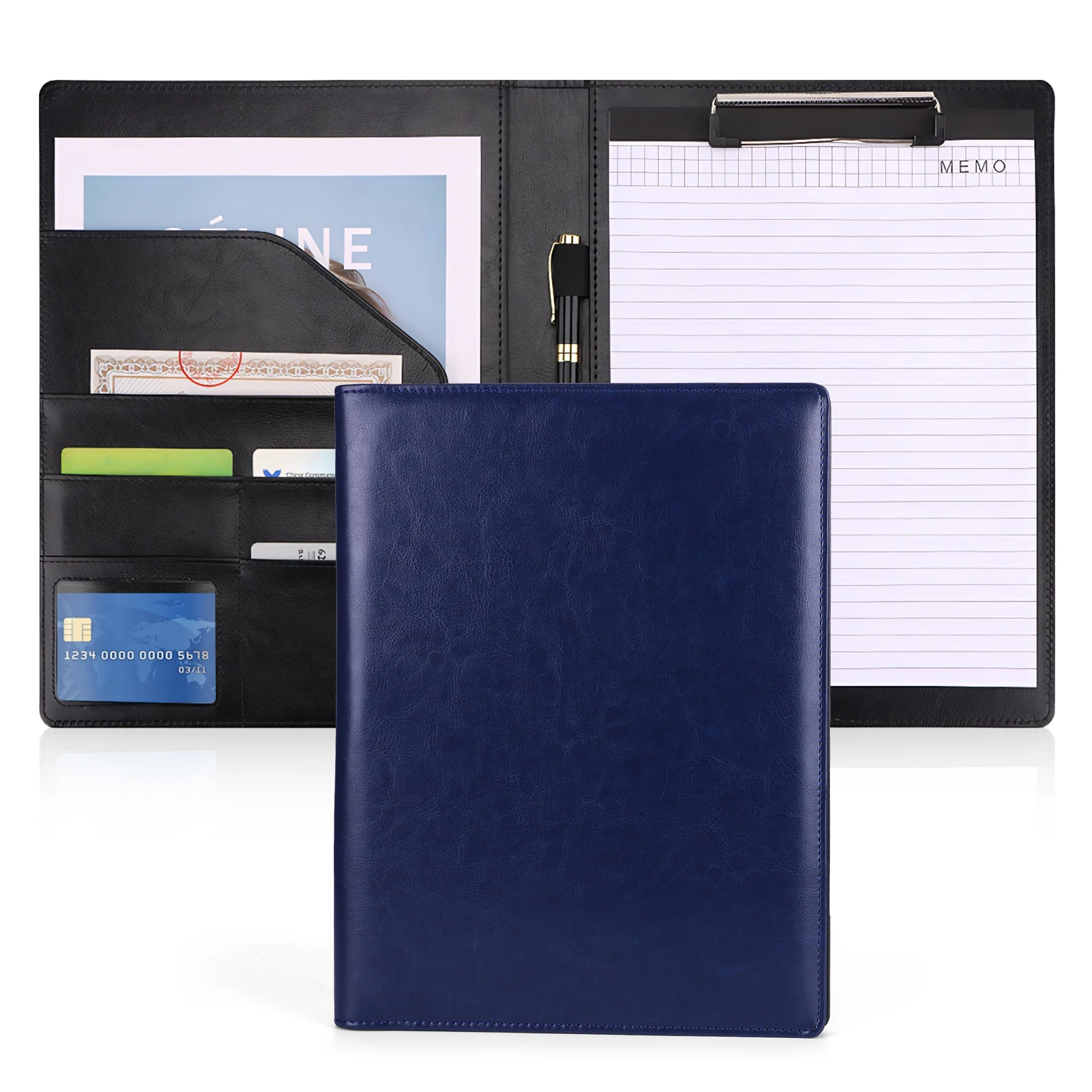 Carpeta de portapapeles A4 con bloc de notas, bolsa para archivos de documentos, Bloc de escritura multicapa de gran capacidad para reuniones de negocios y viajes