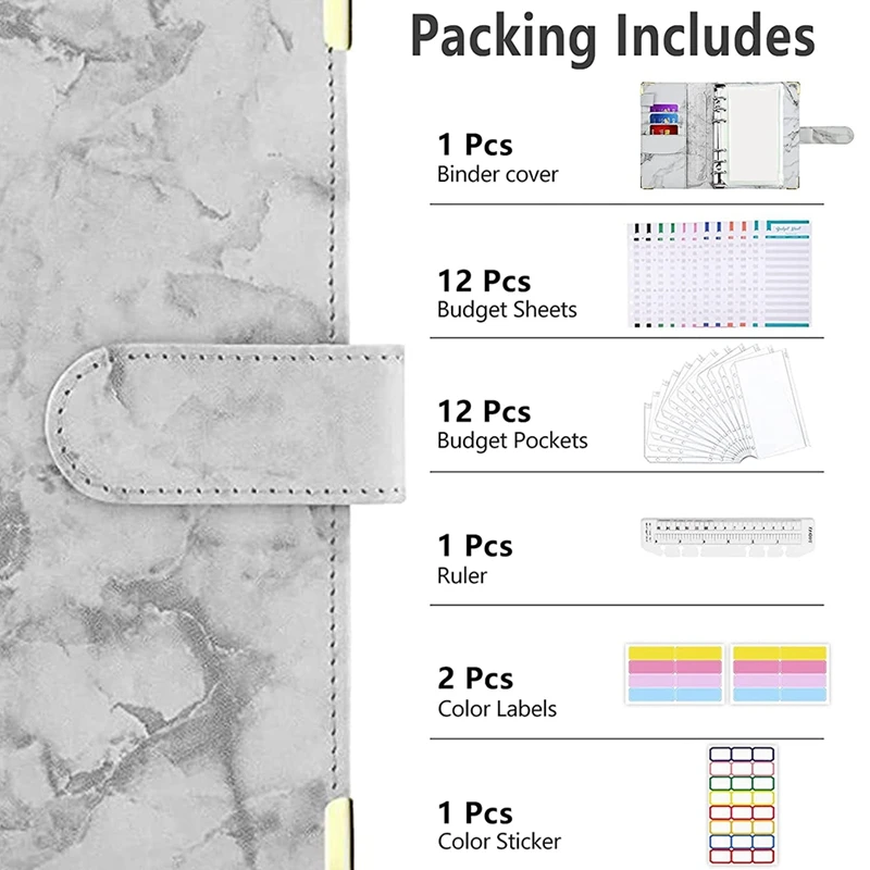 Carpeta económica A6, cuaderno de carpeta de anillas de cuero con 12 bolsillos de sobres de efectivo transparentes y 12 hojas de presupuesto de gastos. [Mantenga el presupuesto organizado] todo el paquete económico en un conjunto organizador de dinero, los bolsillos para carpetas son de material translúcido que hace una vista clara para una identificación rápida y fácil. La carpeta de presupuesto con sobres para efectivo te ayudará a administrar fondos y a lograr los objetivos del presupuesto.
