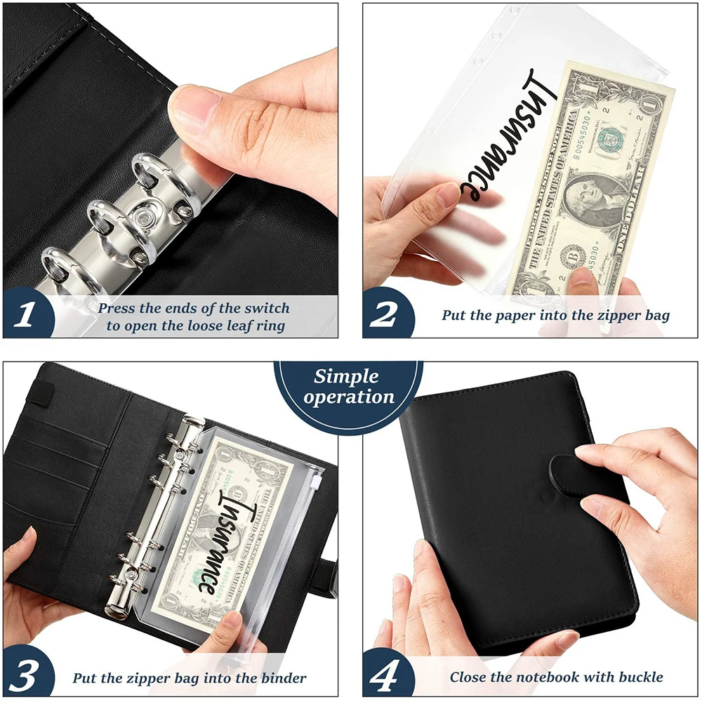 5. Bolsa de almacenamiento de libros de hojas sueltas/puede acomodar el almacenamiento de recibos de gastos del hogar, almacenamiento de pegatinas, etc.